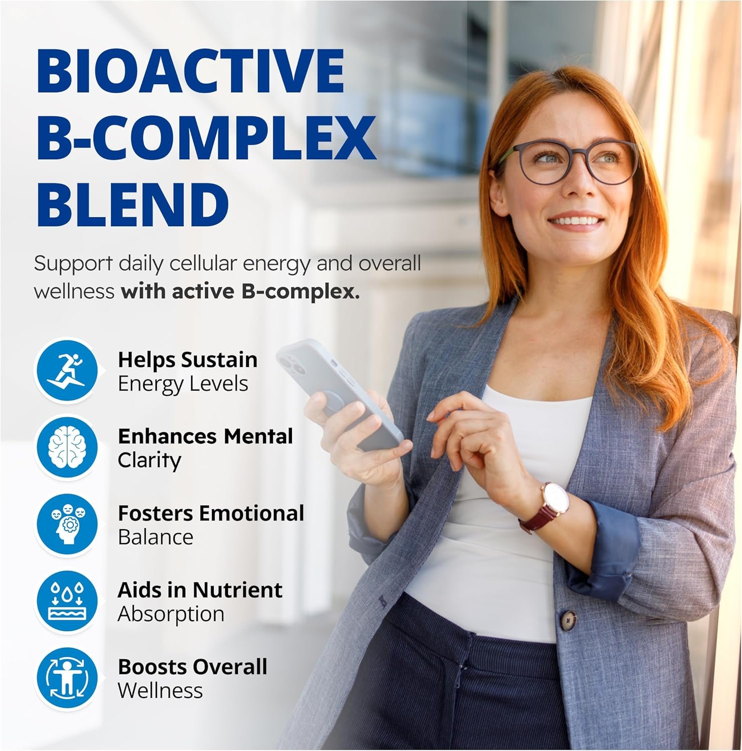 Enhanced Absorption for Maximum Benefits: Skip unnecessary conversions with bioactive forms of all eight B vitamins, including pyridoxal-5-phosphate. This thoughtfully crafted formula ensures your body can fully utilize the nutrients without unnecessary strain, offering effective support to help you maintain physical and mental performance.