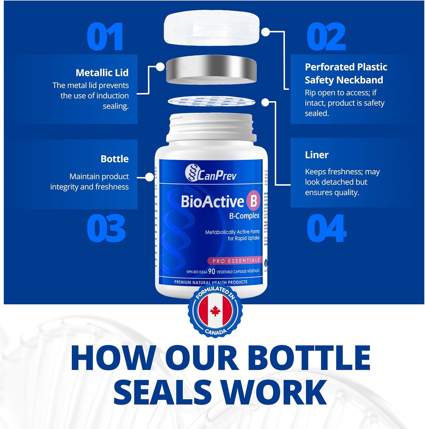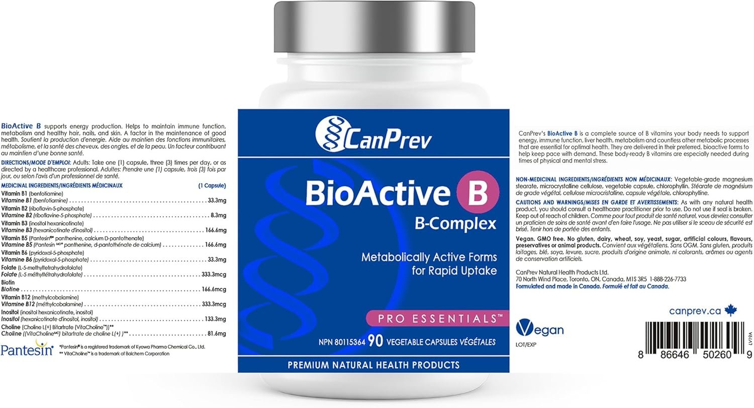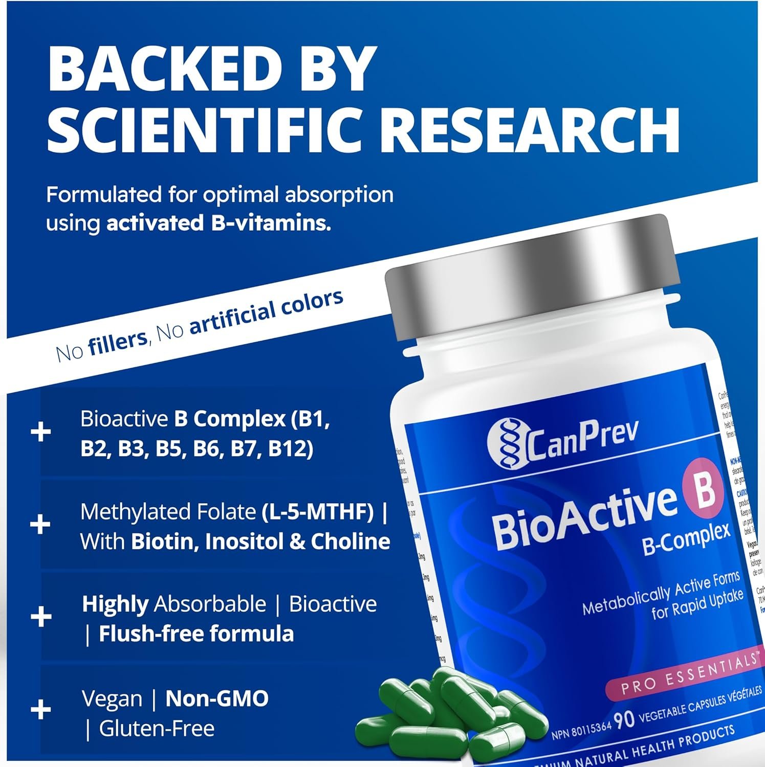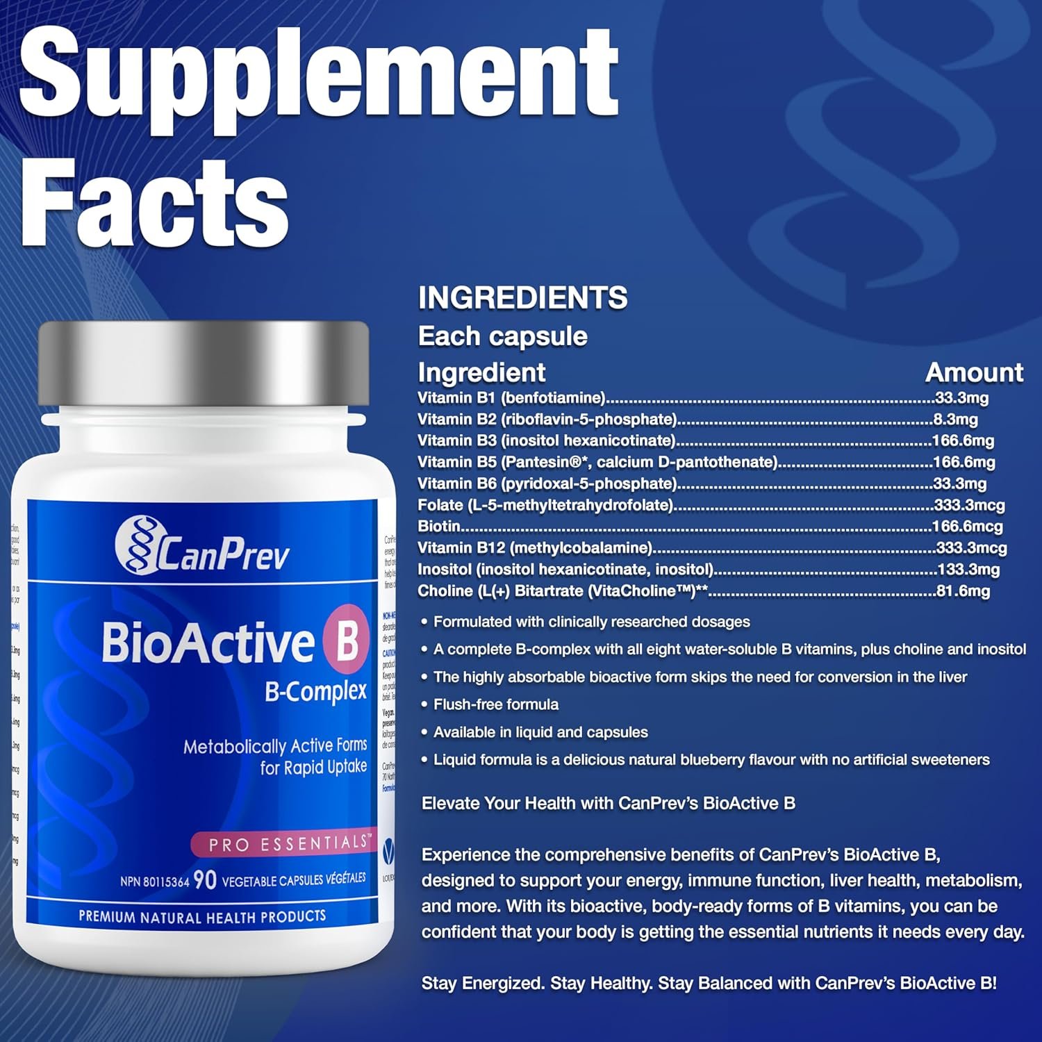 CanPrev BioActive B Vitamin, 90 V-Caps 30-Day Supply – B Vitamin Blend with B1, B2, B3, B5, B6, B12, Folate, Biotin, Choline & Inositol – Perfect for Men & Women – Support Energy & Metabolic Functions