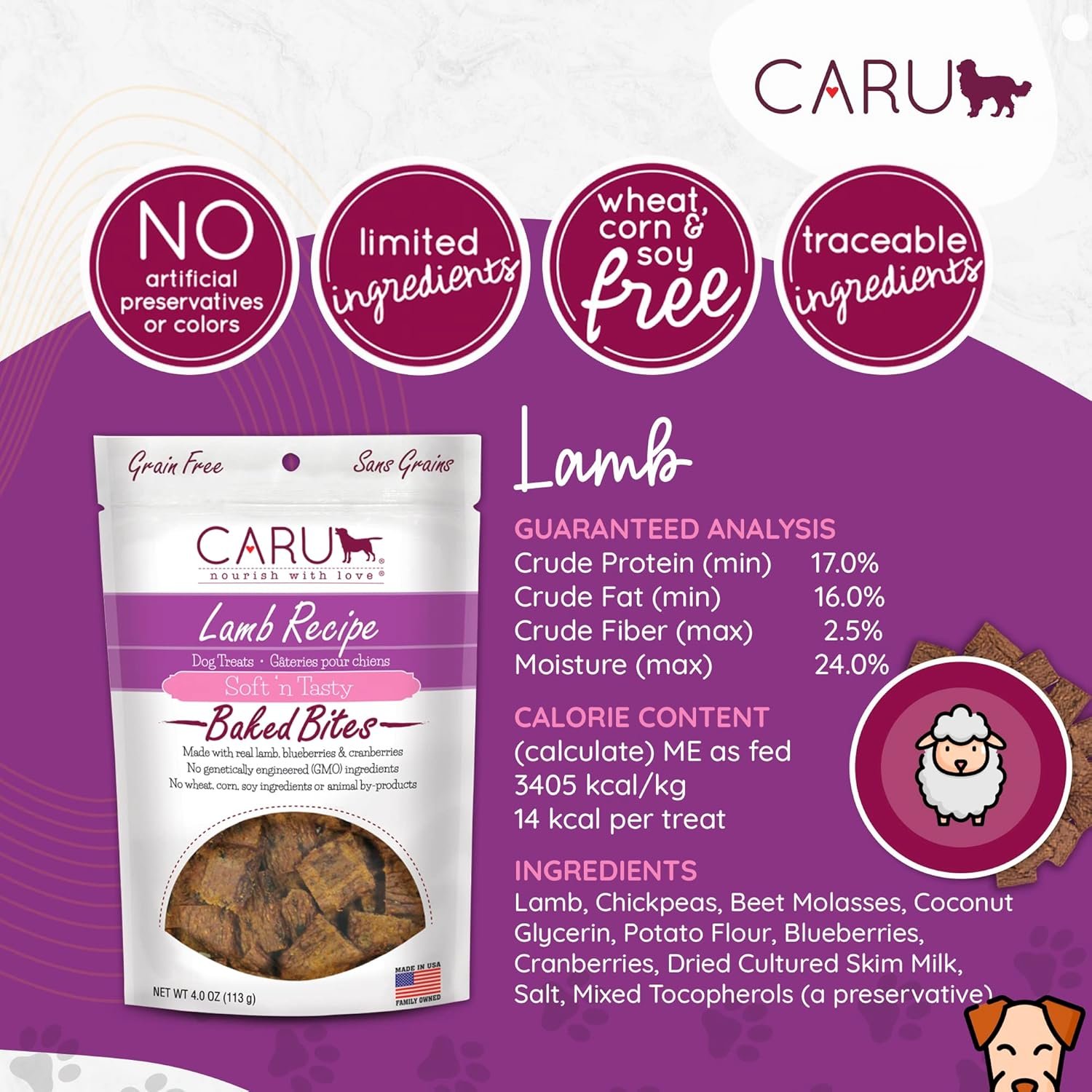 Caru – Lamb Recipe, Soft ‘n Tasty Baked Bites All-Natural Dog Treats, Made with Real Lamb, Blueberries and Cranberries (4 oz)