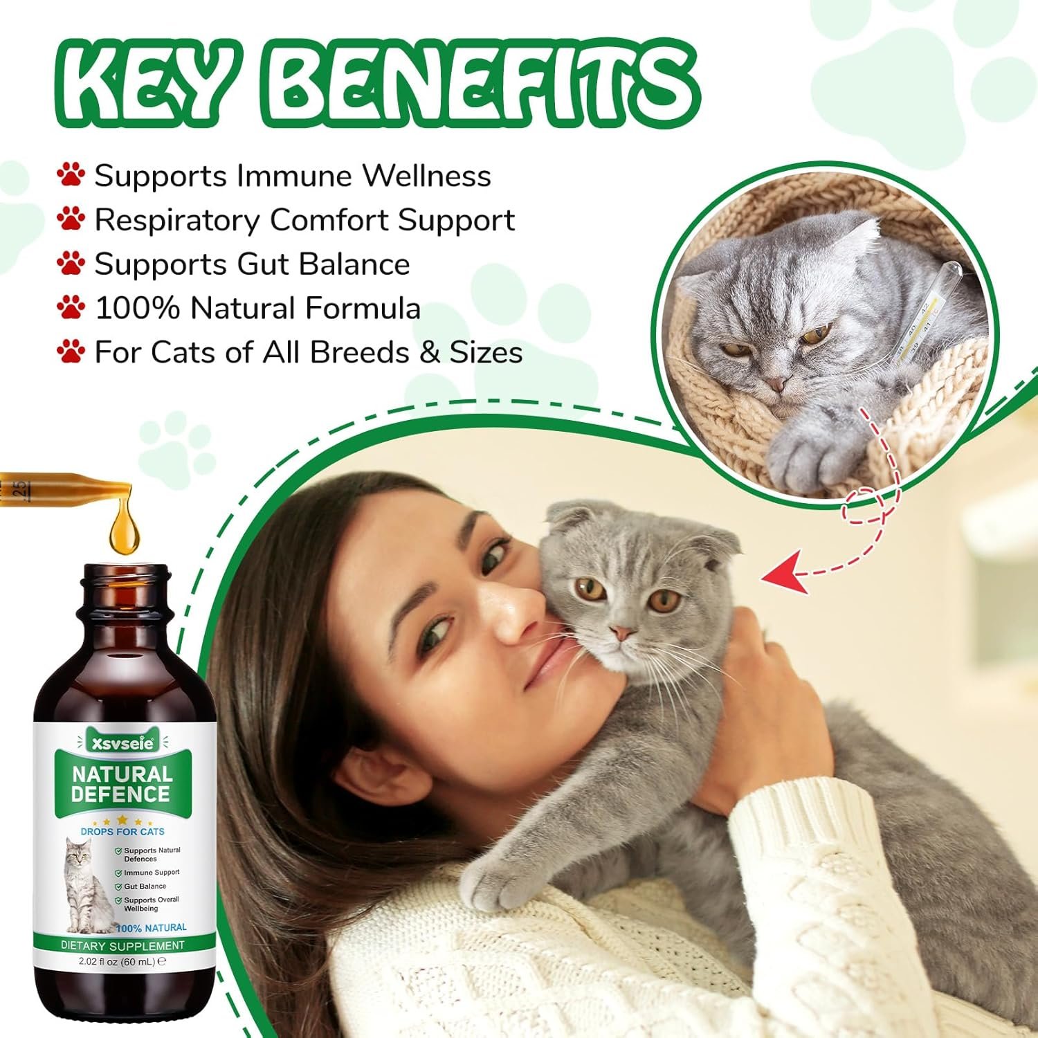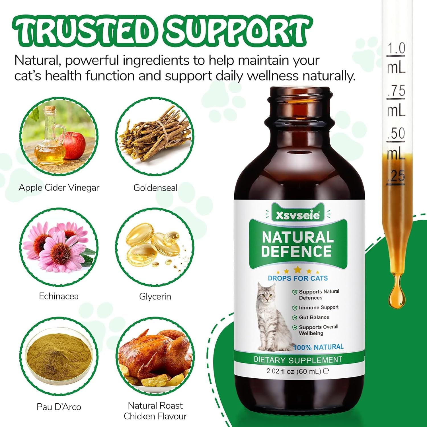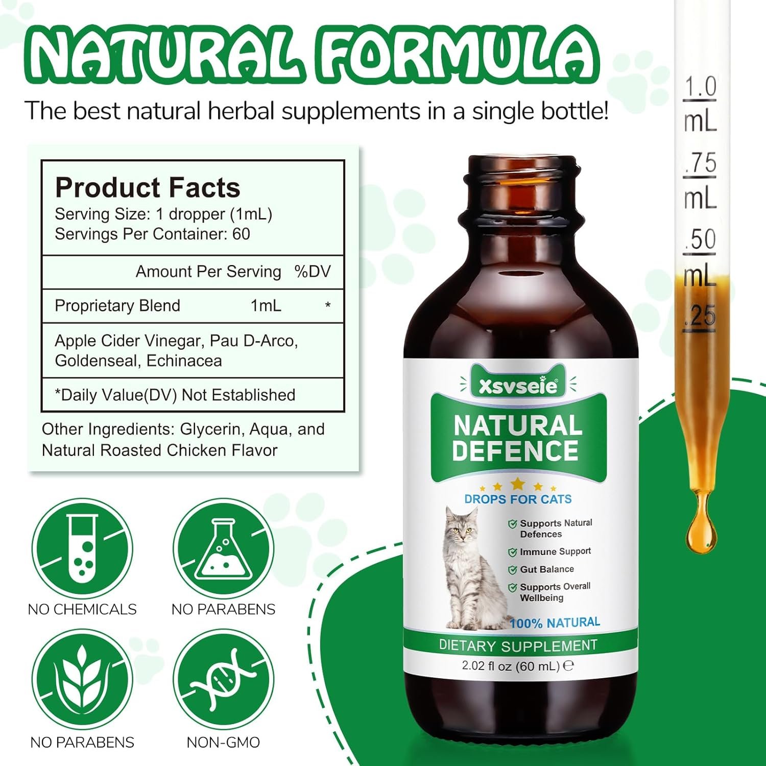 Cat Antibiotics for Infections, Natural Antibiotics for Cats, Antibiotic Pet Supplements Support Immune & Cats Allergy Relief, Cat Multivitamin UTI Drops, All Ages & Breeds, Chicken Flavour,2.02 Fl Oz