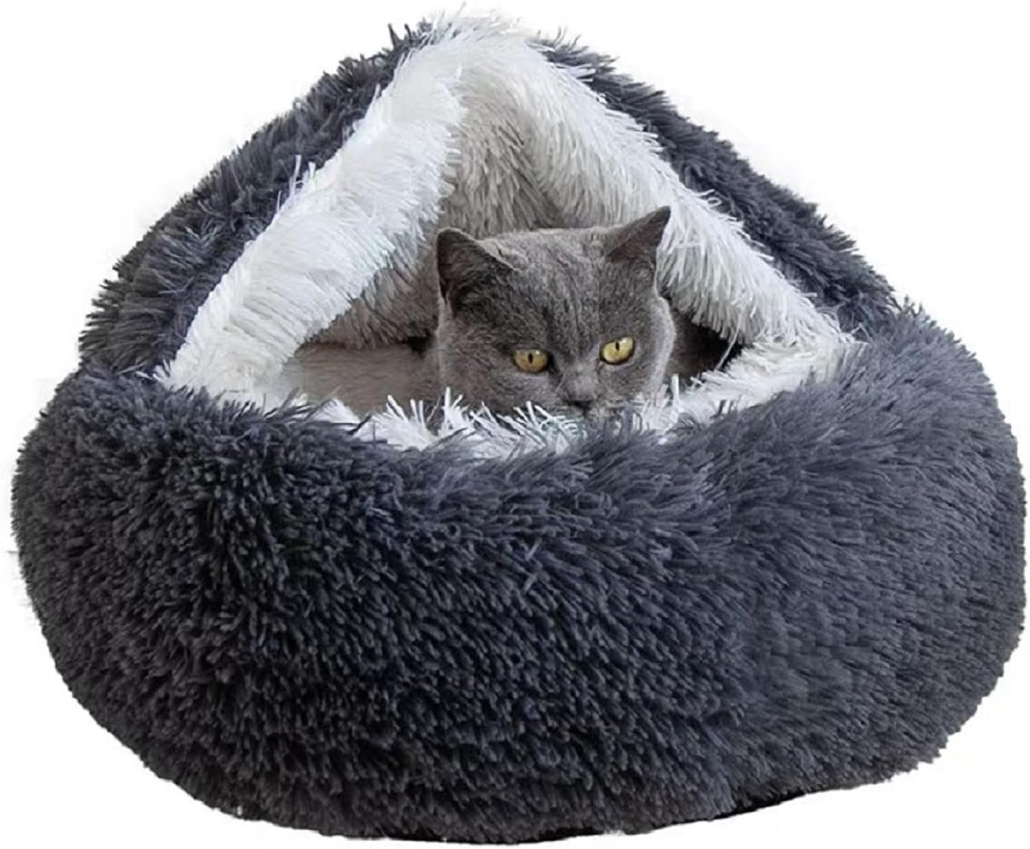 ❤Luxury Cat Cave Bed: Our cat bed with a hood adopt ultra fluffy and smooth long plush material, soft, cozy and not easy to shedding, which effectively retains your pet’s body heat, gives your furry friends some privacy and warmth! Donut round cat bed cave design gives pets a sense of security and provides the ultimate comfort for dogs/cats who love to cuddle, curl and snuggle while sleeping.