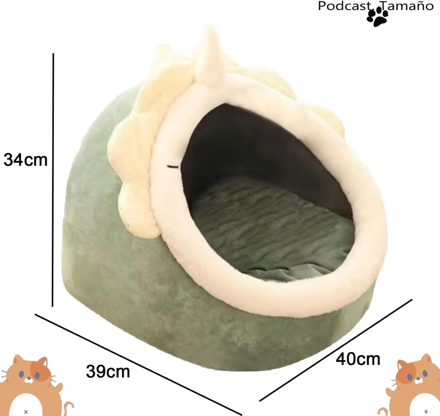 Size: This semi-enclosed cute cat bed measures 40*38*34cm. Ensure that the cat beds dimensions are suitable for the pet size, providing enough space for a comfortable rest.
