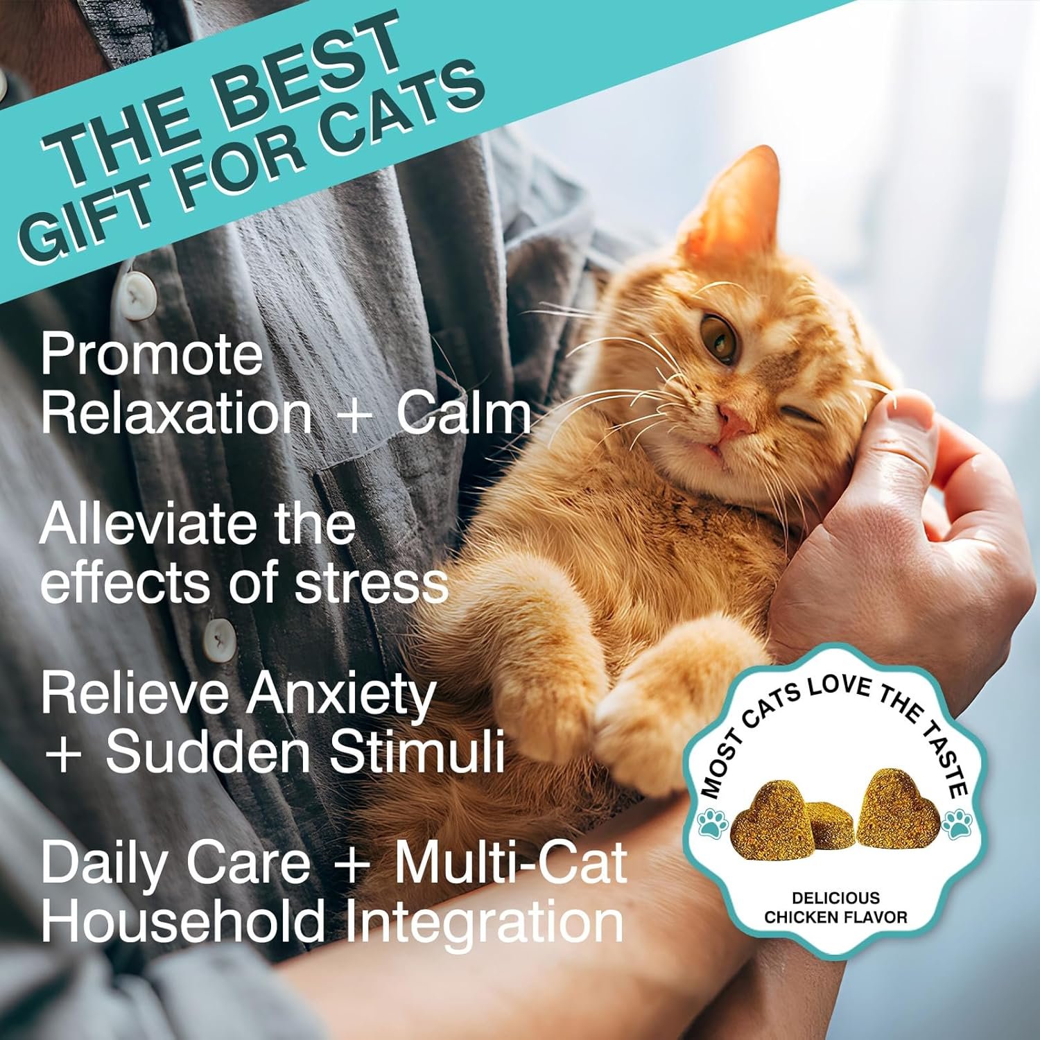 Delicious Chicken Flavor, Easy to Feed: Cats love the tasty chicken flavor of our calming cat treats, making feeding a breeze. No need to force-feed—simply add these calm treats for cats to your cat’s daily diet. Whether for cat calming treats for travel or calming cat treats for anxiety, these cat calming chews make the calming process enjoyable and stress-free