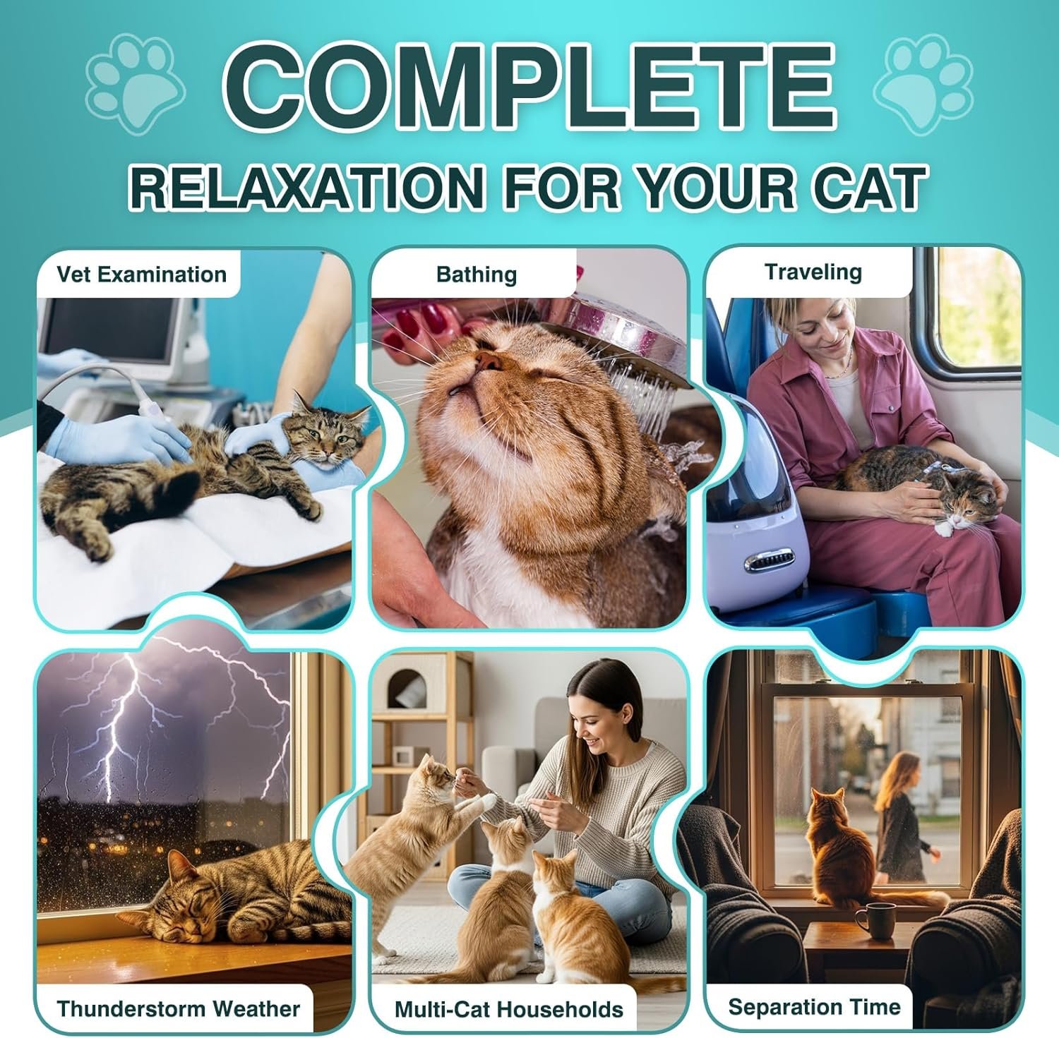 Quick Onset, Suitable for Various Situations: This cat calming treats takes effect within 30-45 minutes and provides up to 12 hours of relaxation. These calming treats for cats are perfect for various scenarios, including travel, vet visits, or sudden stress spikes. Use cat calming treats for travel to ease your cat’s nerves or give calming cat chews before a vet appointment. Adjust the dosage of cat calming chews as needed to provide calming care for cats in high-pressure moments