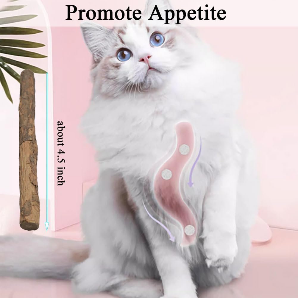 Promote Health; silvervine sticks is helpful for teeth grinding; cat chew sticks can eliminate dental plaque and tartar for oral fresh breath; catnip sticks can also promote intestinal peristalsis to increase appetite effectively