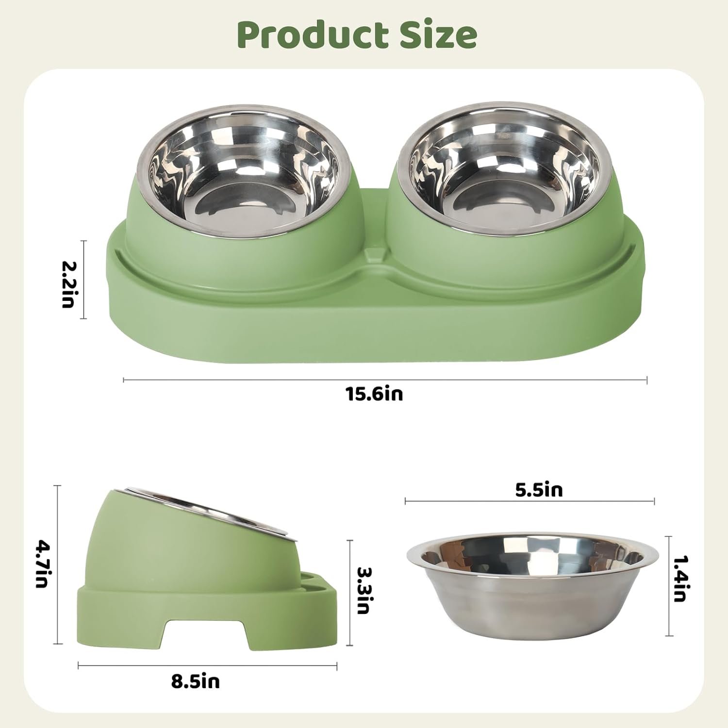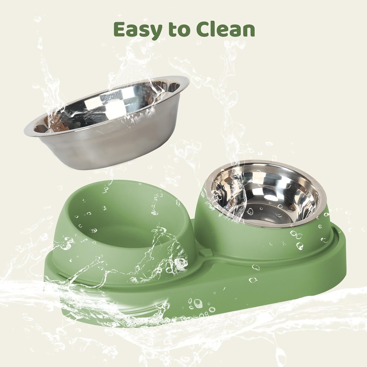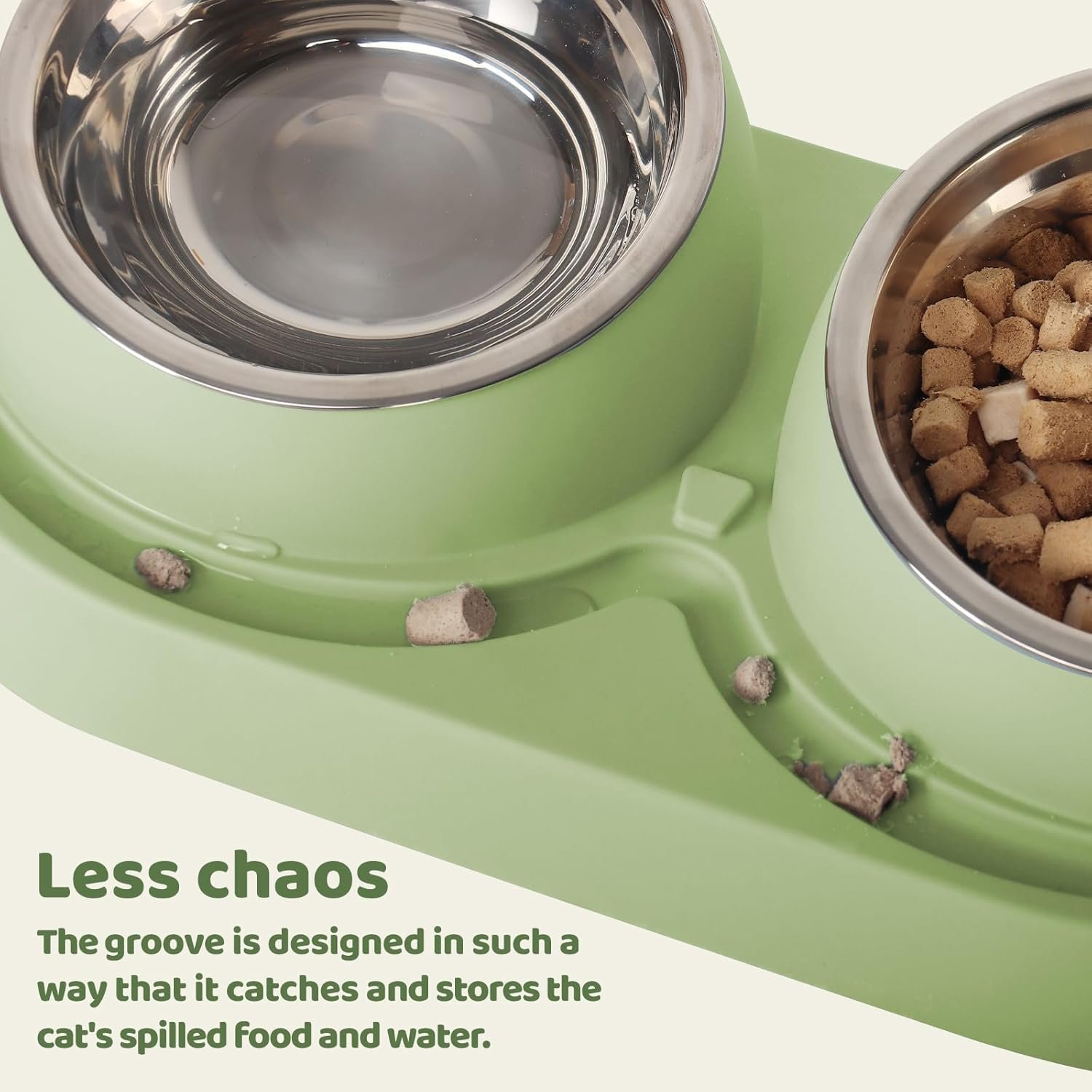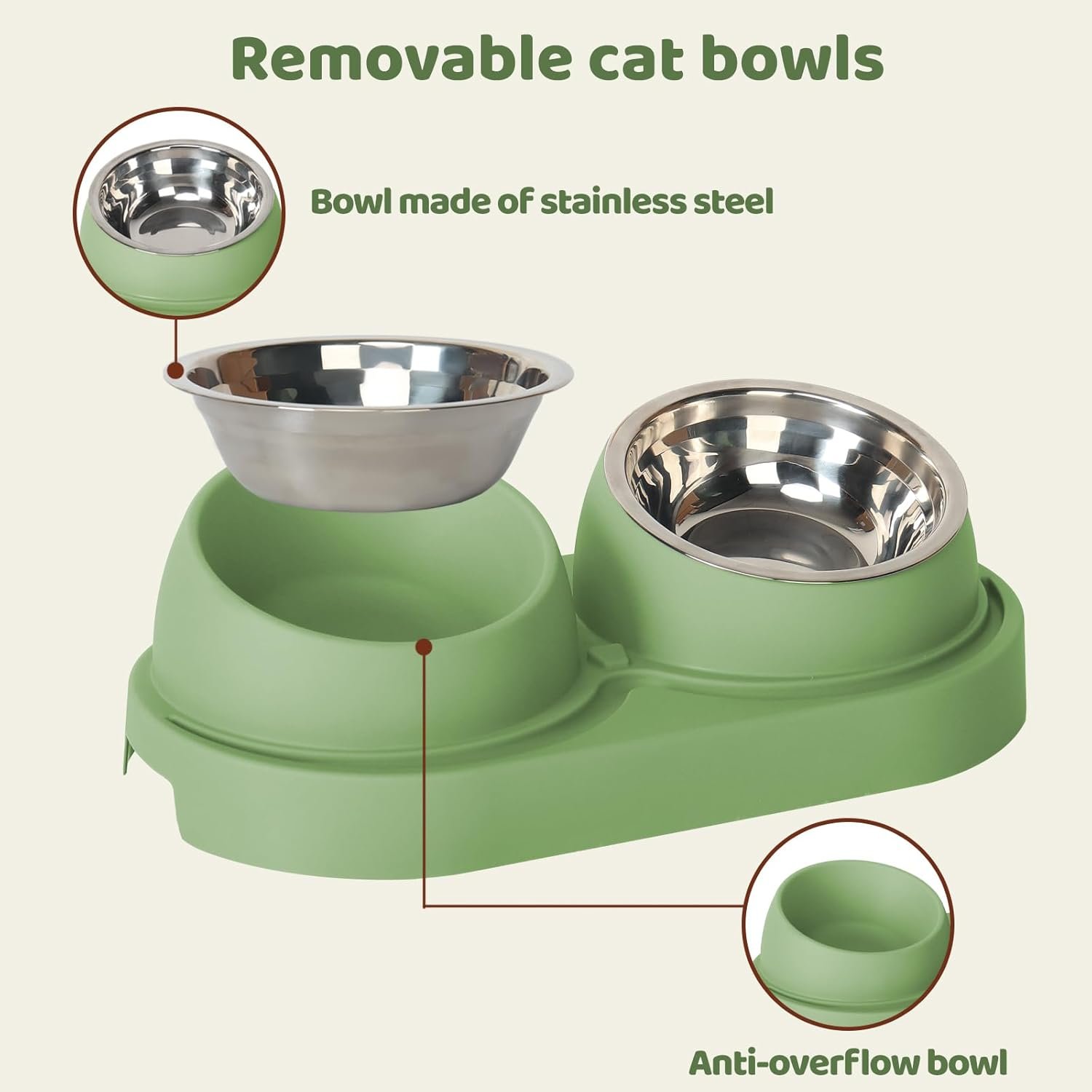 Cat Feeder and Water Dispenser, Cat Feeder with Stainless Steel Bowls, Pet Food Dispenser for Cats and Small Dogs, Easy to Clean(Green)