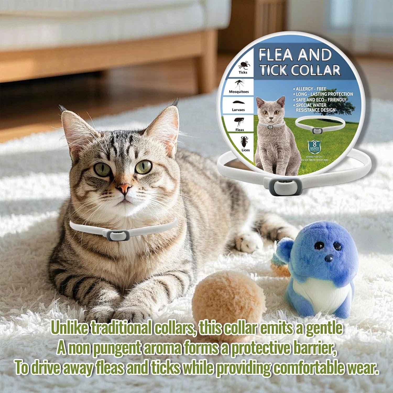 Pleasant, Pet-Safe Fragrance: Features a gentle, non-irritating scent that forms a protective barrier against pests while remaining comfortable for cats to wear