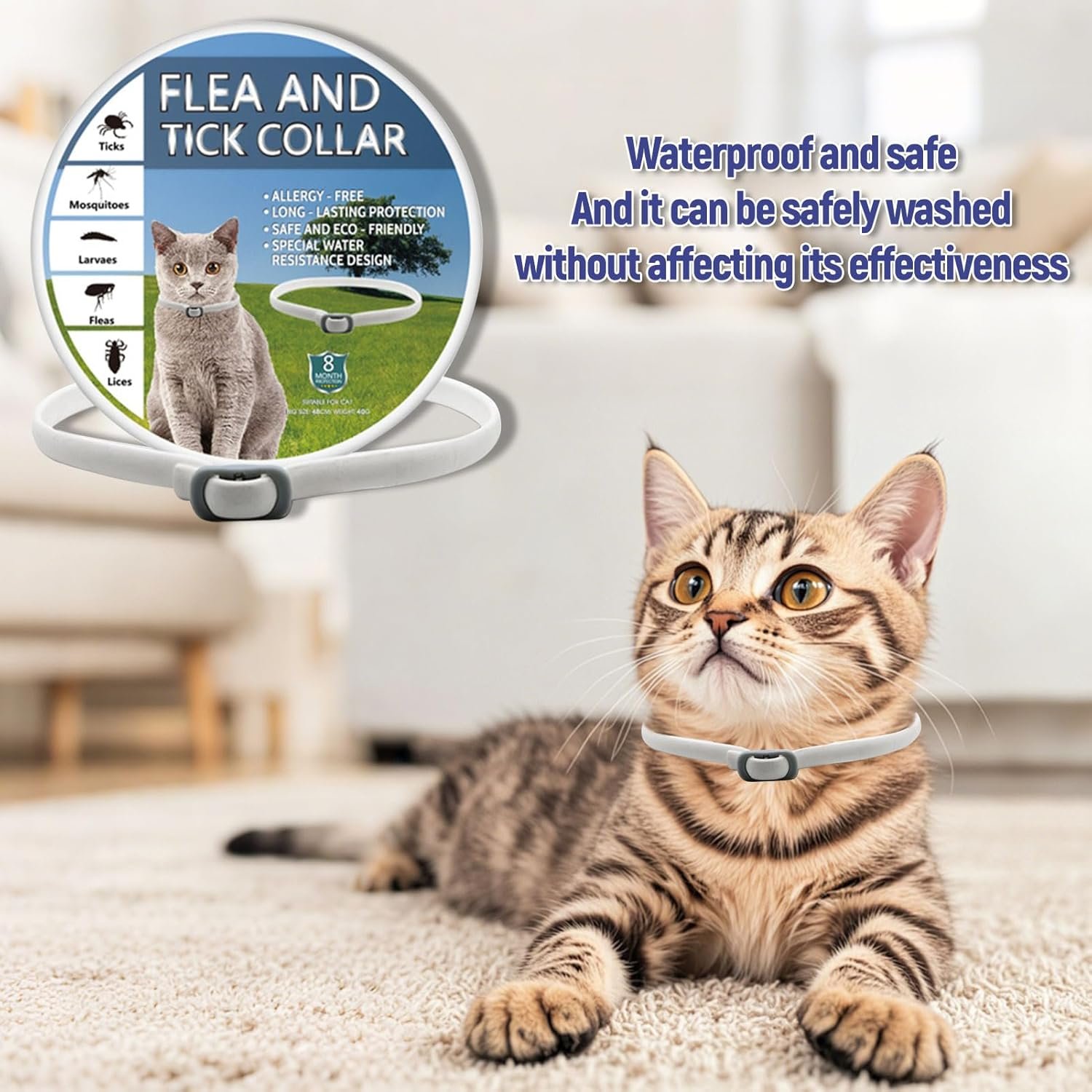 Perfect for pet owners who value both safety and performance, this collar is a must-have for keeping your cat protected year-round. Whether you’re out exploring nature or lounging at home, rest easy knowing your feline is safeguarded from pests with a collar that’s as gentle as it is effective.
