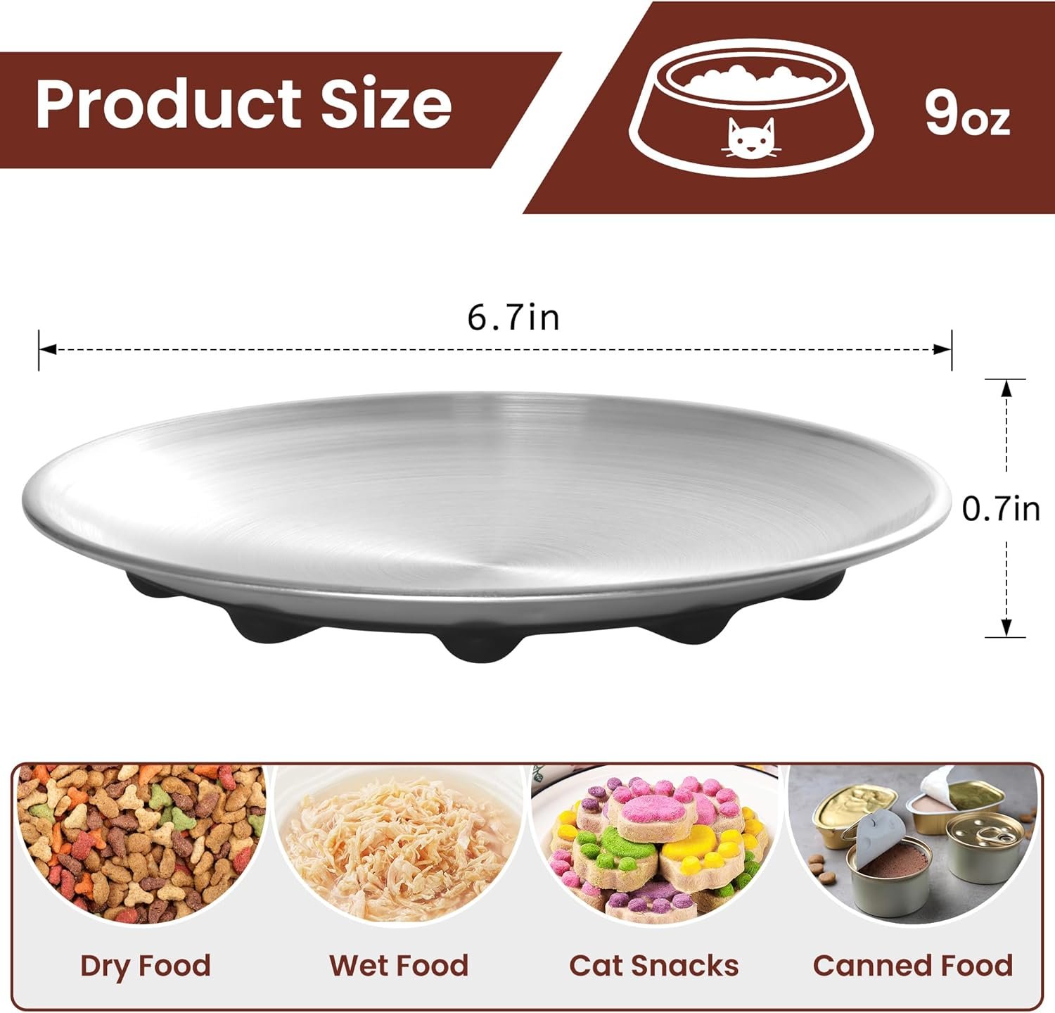Cat Food Bowls, 6.7″ Stainless Steel Whisker Fatigue Cat Plates with Non-Slip Silicone Base, Shallow Kitten Dishes for Wet & Dry Food