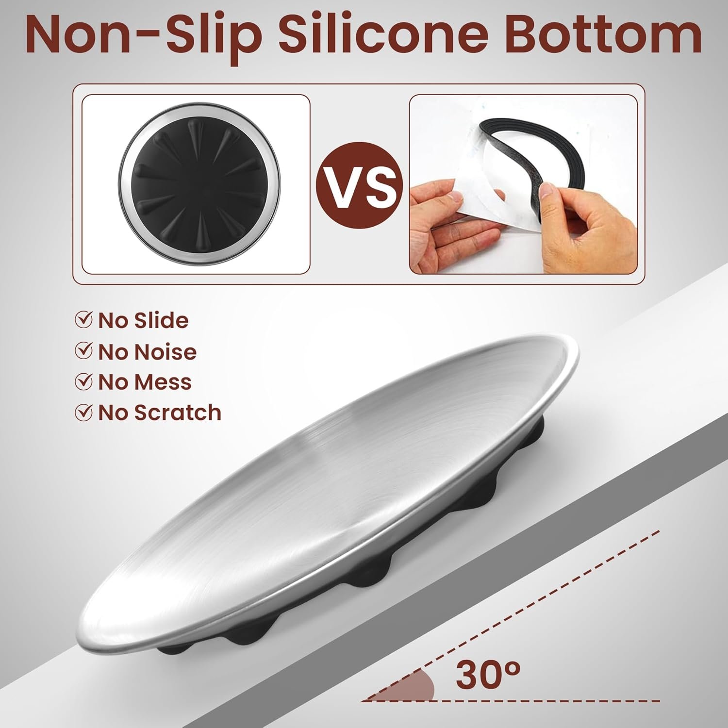 【Anti-Slip System】The cat plates feature an anti-slip silicone bottom that prevents sliding while your cats are eating, reducing noise during feeding. The silicone material on the base also protects your floors and maintains quiet dining.