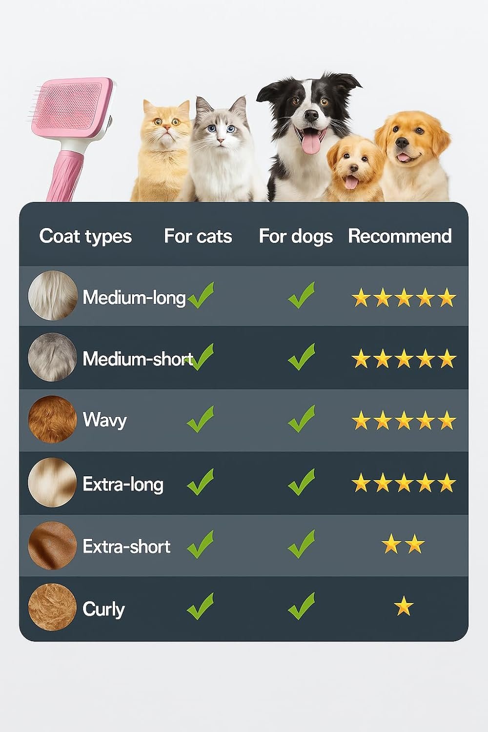 Veterinarians, professional groomers, and pet owners strongly recommend this product. Enjoy spending time with your pet while you brush and deshed them! Perfect for long or short-haired breeds as pets.