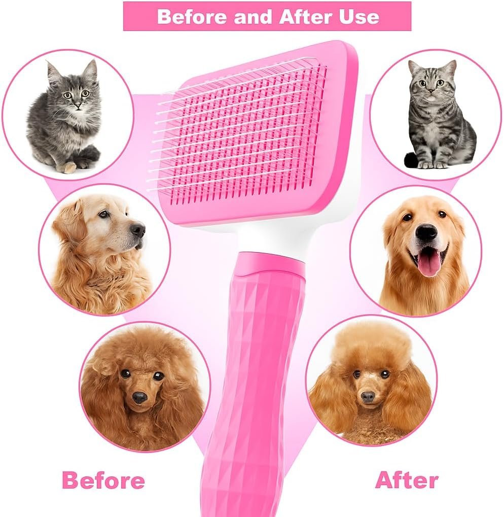 Cat grooming brush, Cat fur brush, Pet hair brush, Dog grooming brush, Dog slicker brushes for grooming, Tool Gently Removes Loose Undercoat, Brush for Pet Massage (Black) (Pink)