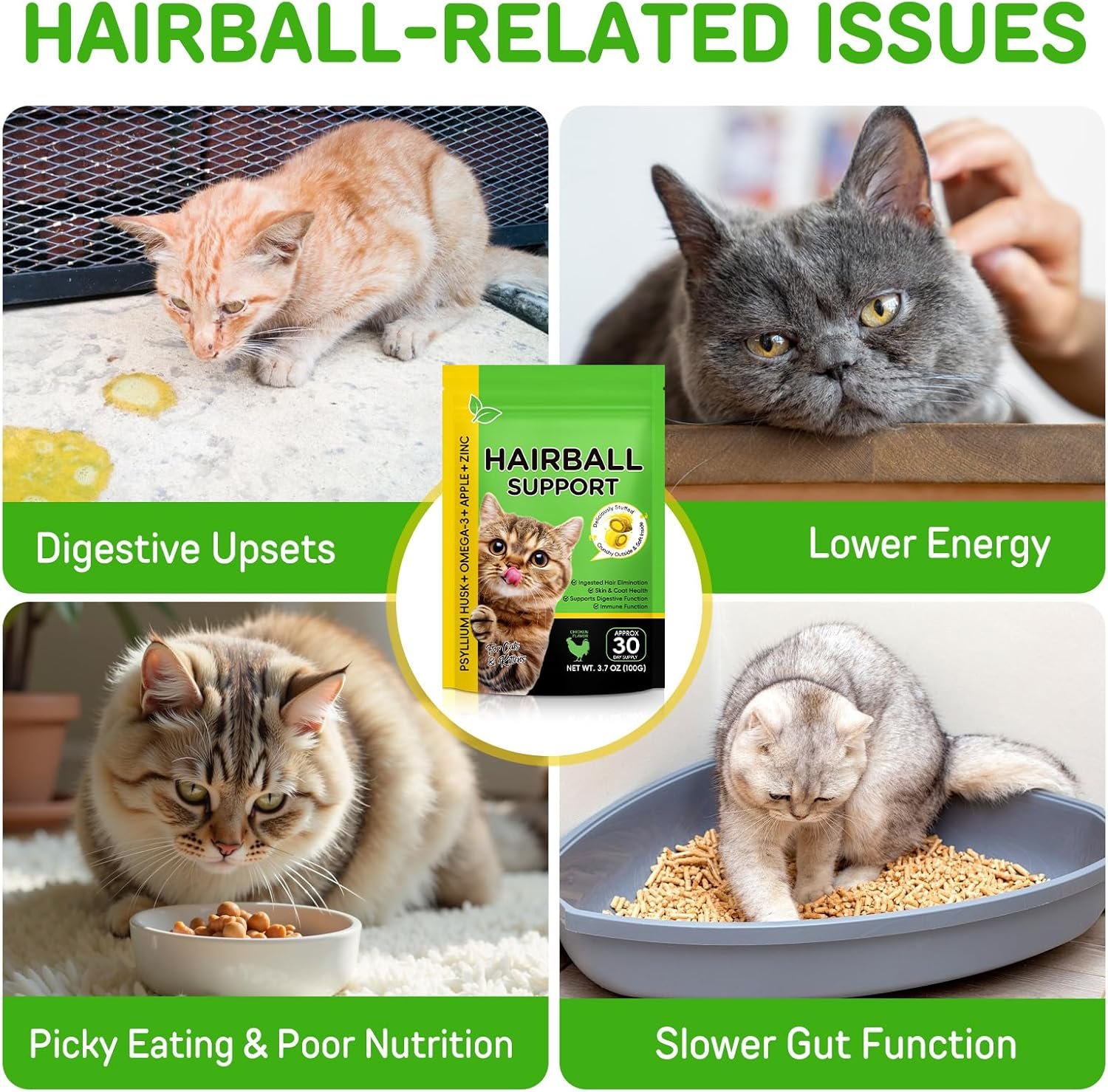 Gentle Hairball Care: Formulated with a natural, mild blend to help your cat naturally manage ingested hair, promoting comfortable digestion and effortless elimination.