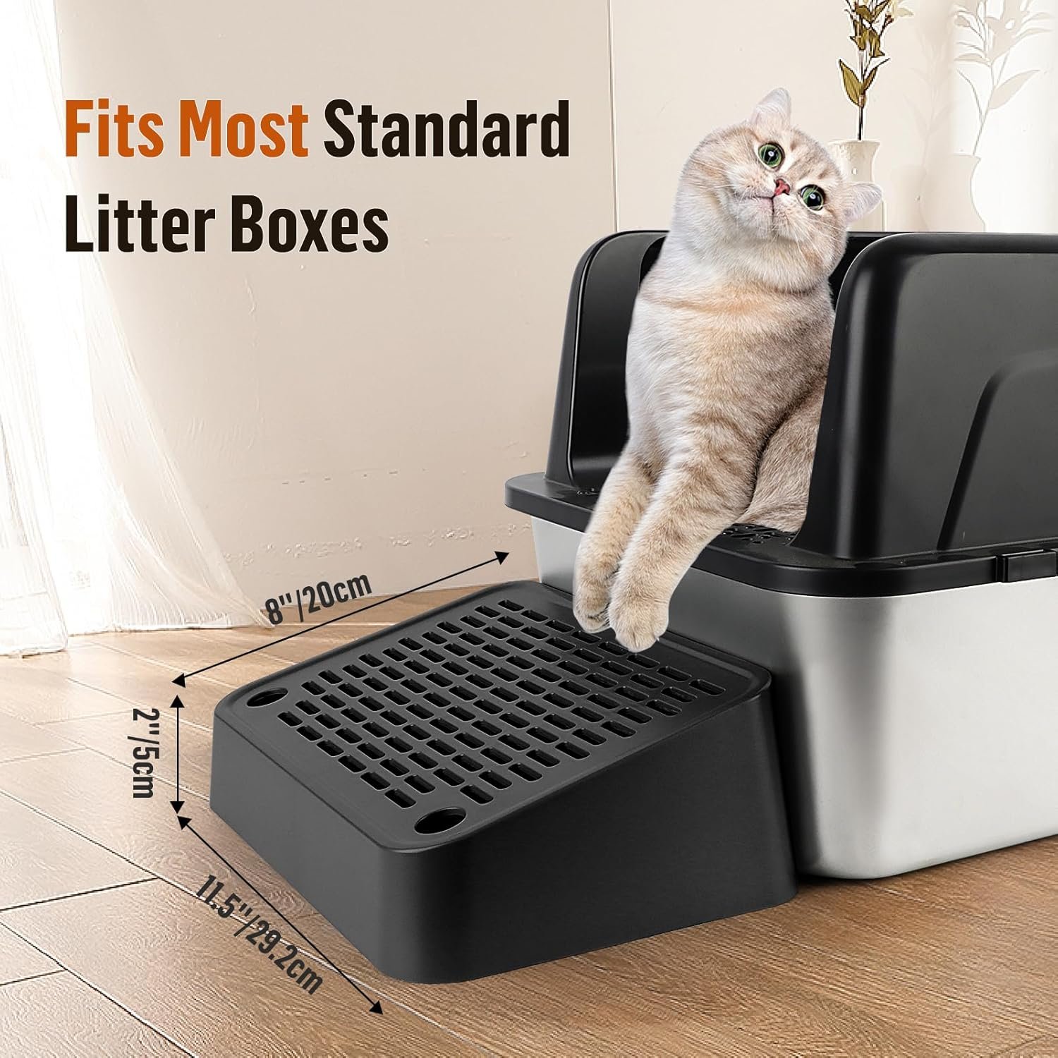Fits All Cat Litter Trays: The elevated cat litter box ramp raises the height for cats to enter and exit the litter box, suitable for kittens and older cats, which ensures easy access to and from it and reduces pressure when jumping.