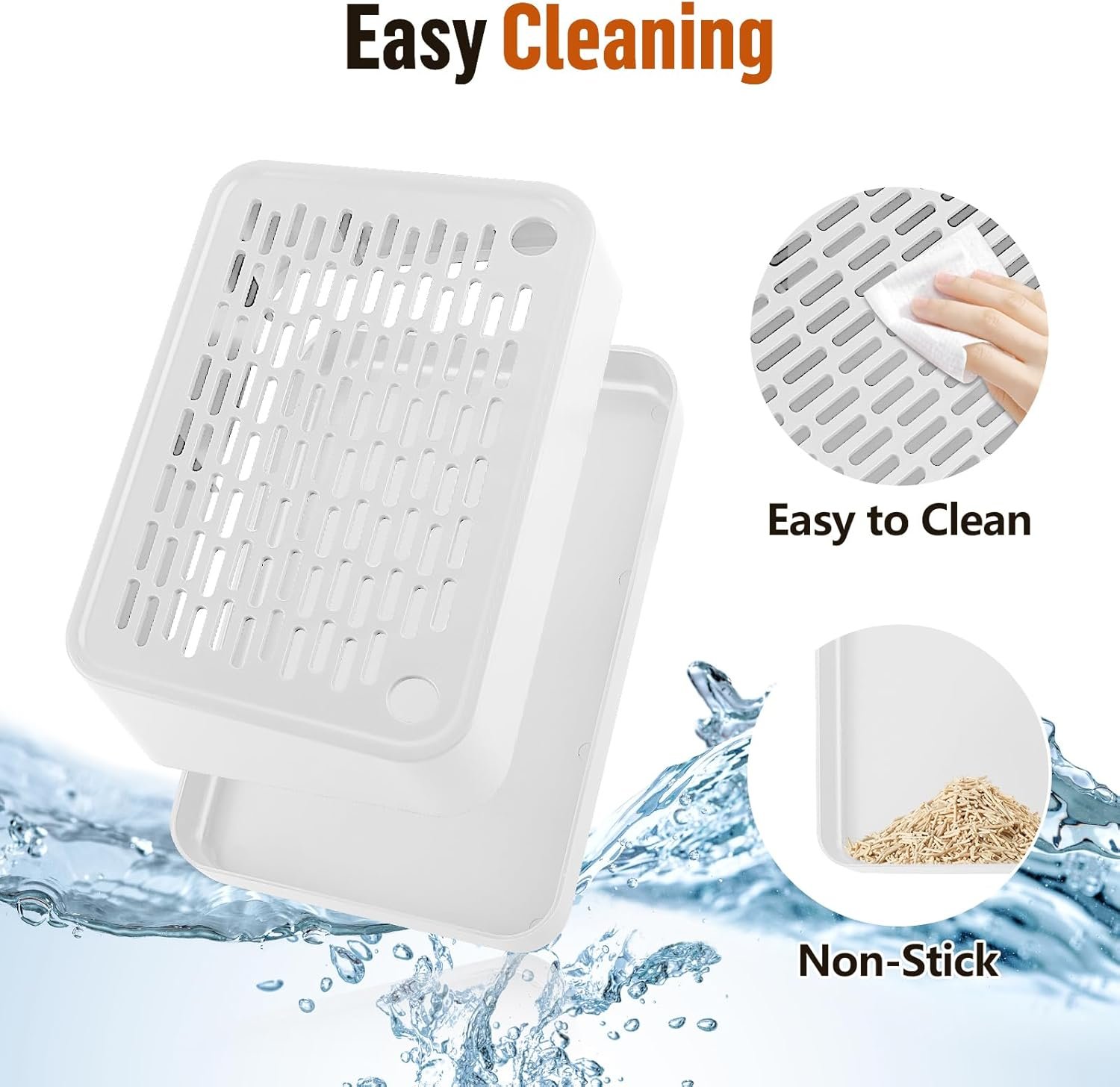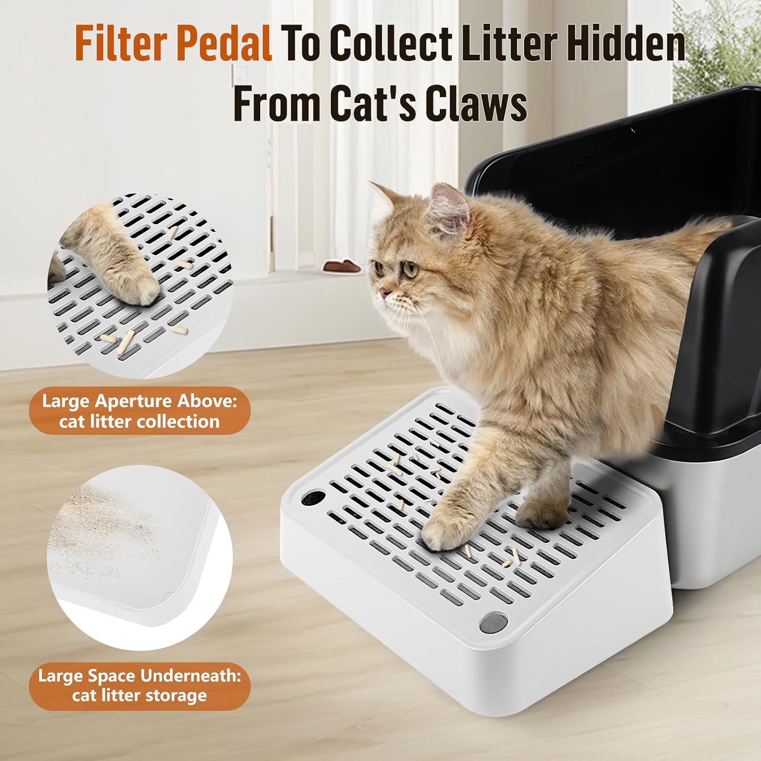 Easy to Clean: The cat litter box stair features a large aperture pedal and hidden opening lid. This design collects dropped litter and allows for quick opening the litter box step for easy cleaning.
