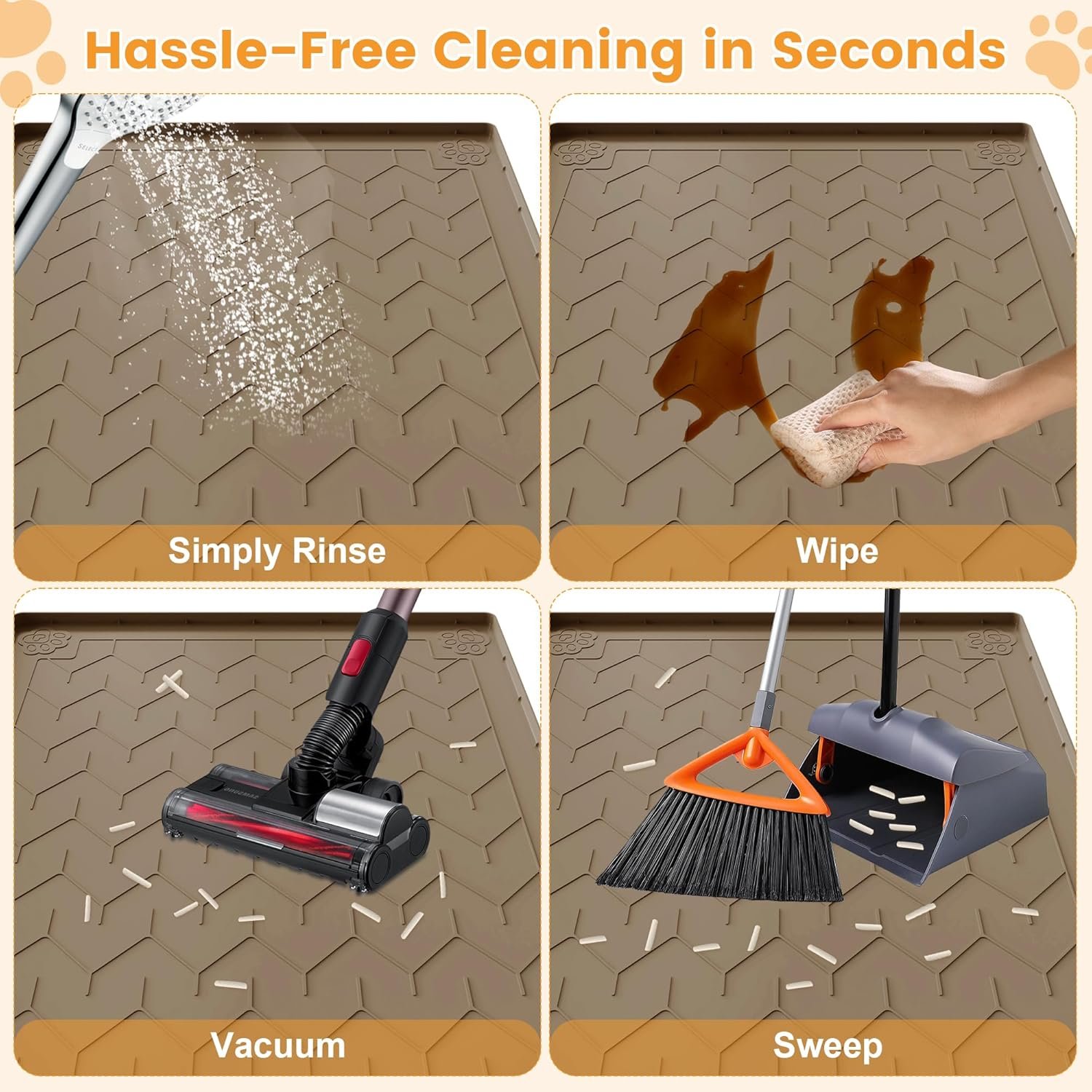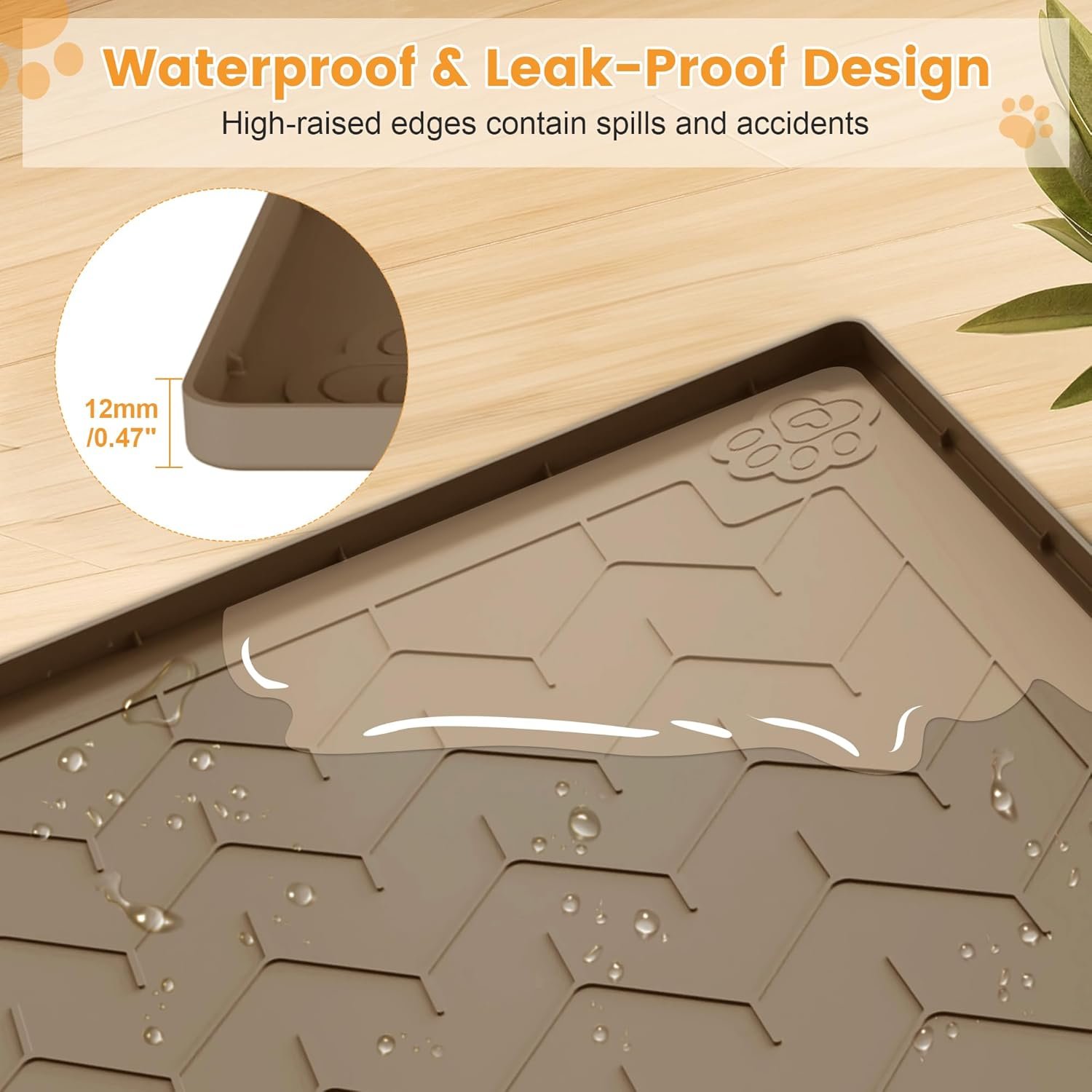 Waterproof & Leakproof Design: Crafted from non-absorbent, inherently waterproof silicone, this mat locks in liquid. Combined with its raised edges, it reliably contains all urine and spills to safeguard your hardwood, tile, and laminate floors
