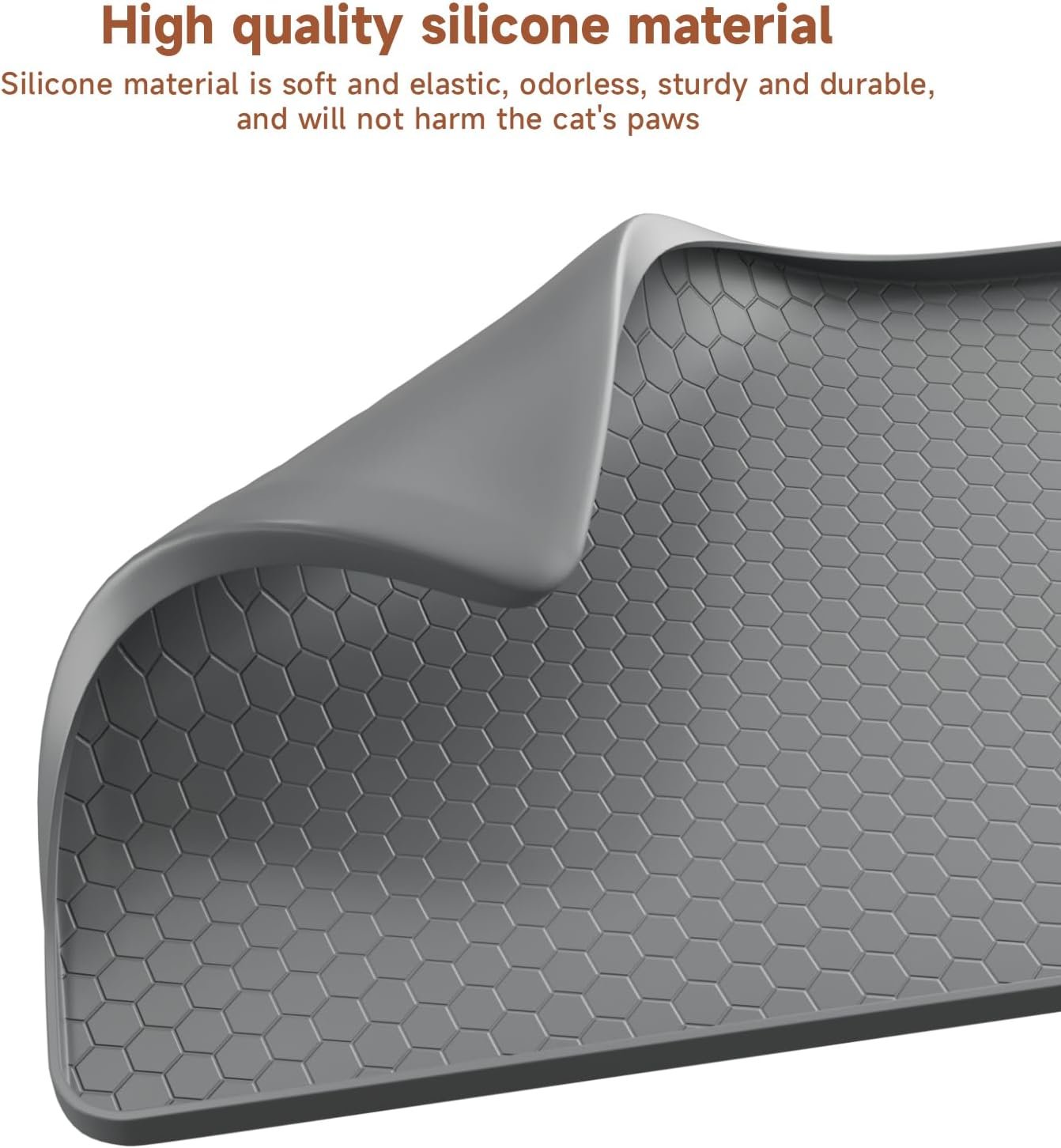 Cat Litter Mat Silicone Rubber, 80x56CM Pet Feeding Mat, Dog Cat Food Mat, Waterproof, Non-Slip, Spill-Proof Floor Protection, Easy to Clean, Multi-Use Mat for Litter Box, Feeding & Kitchen