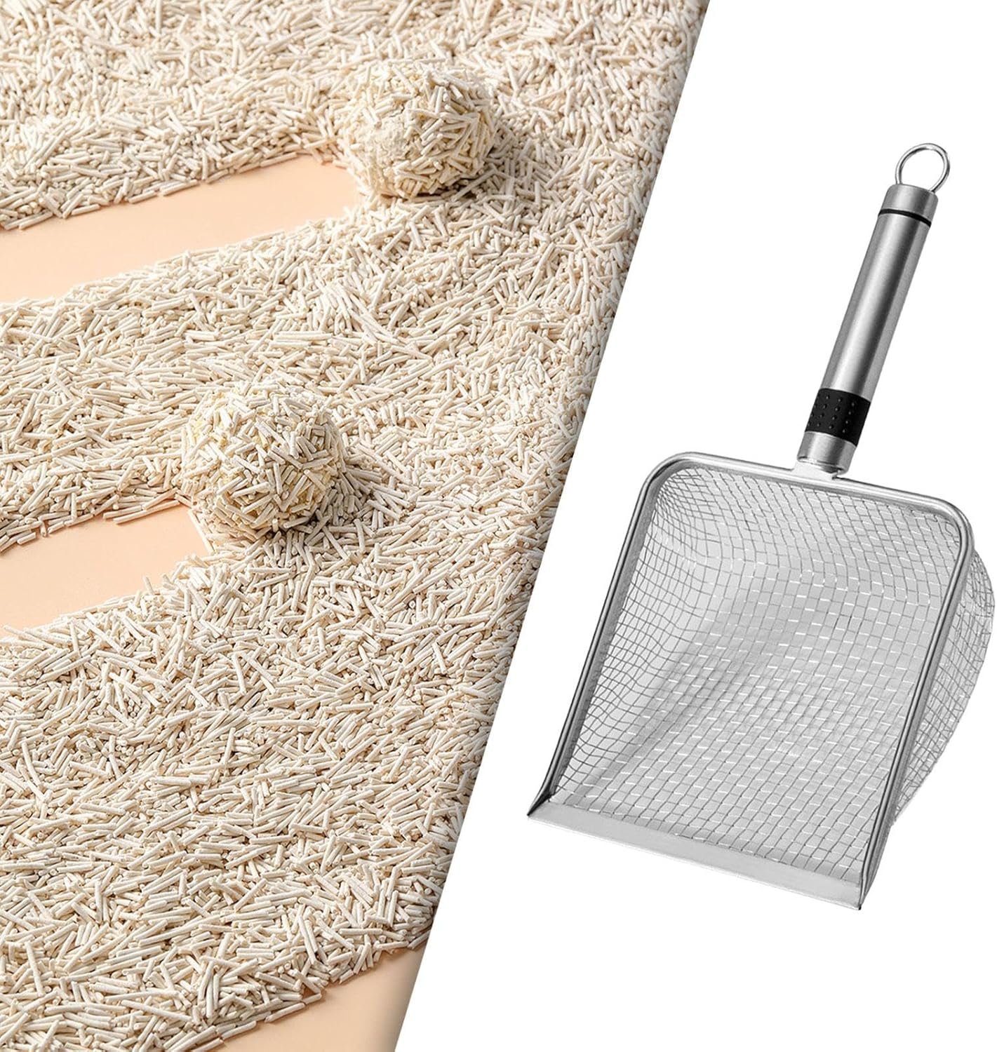 ✔️【Premium and Reliable】: The litter spade is made of high quality stainless steel material, which is lightweight and durable, and gently and quickly leaks the sand.
