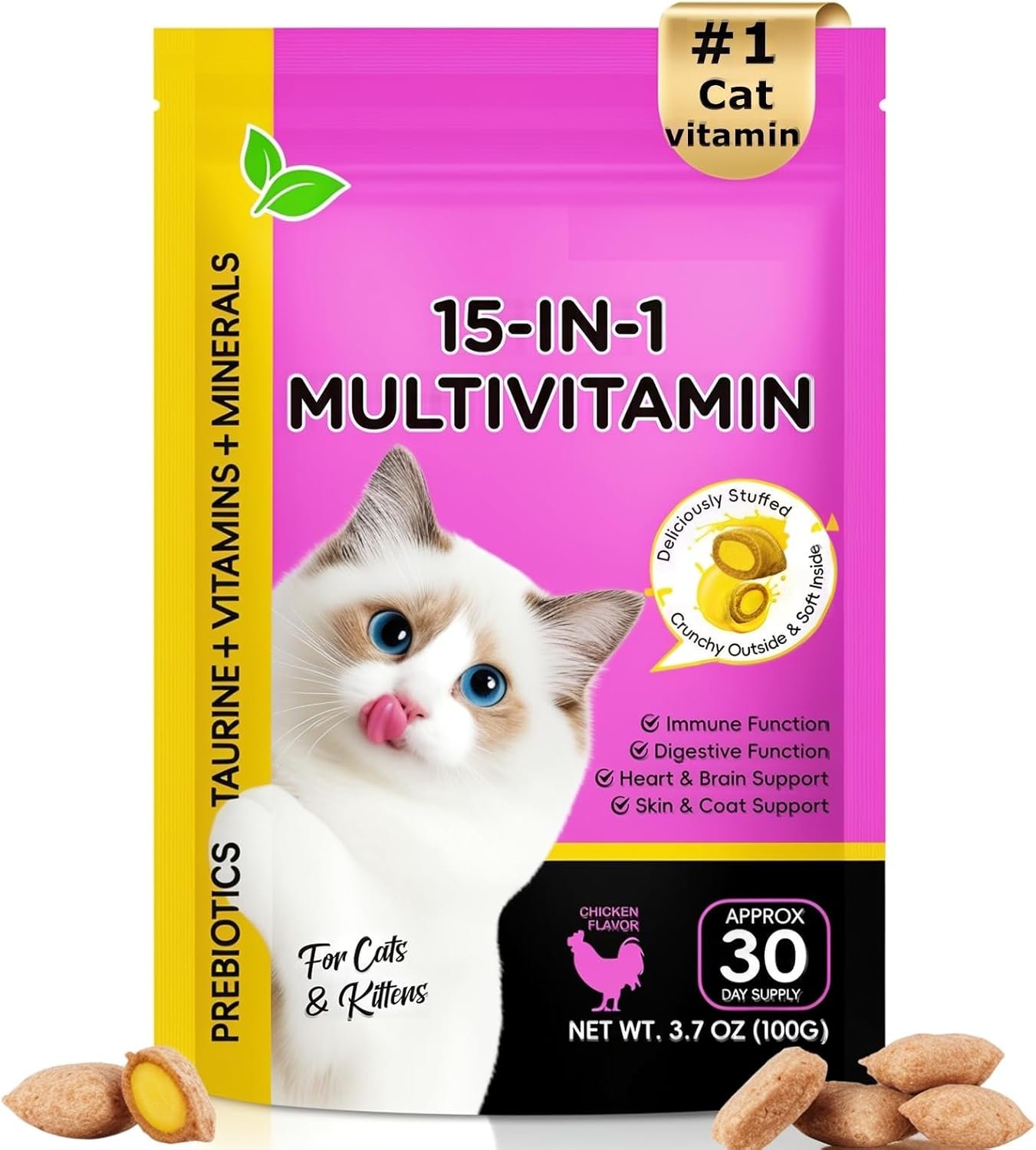 Cat Multivitamin Chews: 15 in 1 Vitamins for Cats – Daily Cat Supplements & Treats – Immune, Joint Support, Skin & Coat, & Digestion (30 Day Supply)