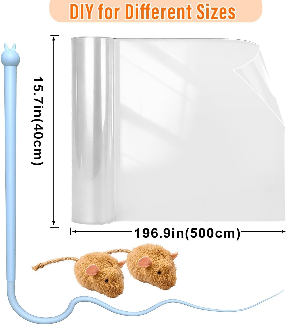 【Large Roll & Bonus Cat Toy Gift Set】WOHOHOHO Cat Scratch Protector gets extensive coverage with a generous 15.7″ x 196.9″ (500 cm) roll. As a special gift for your cat, we include 2 soft plush mice and a silicone-tailed wand toy to encourage play and positive engagement away from your couch.