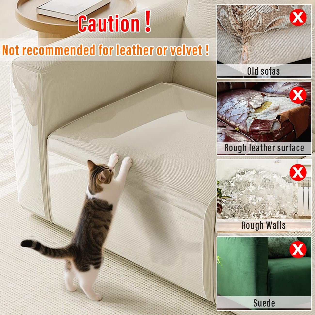 【Easy Application & Important Material Note】Couch cat scratch protector has a simple peel-and-stick installation. Please note: Due to its strong grip, it is not recommended for use on leather, faux leather, velvet, or delicate microfiber surfaces to avoid potential damage.