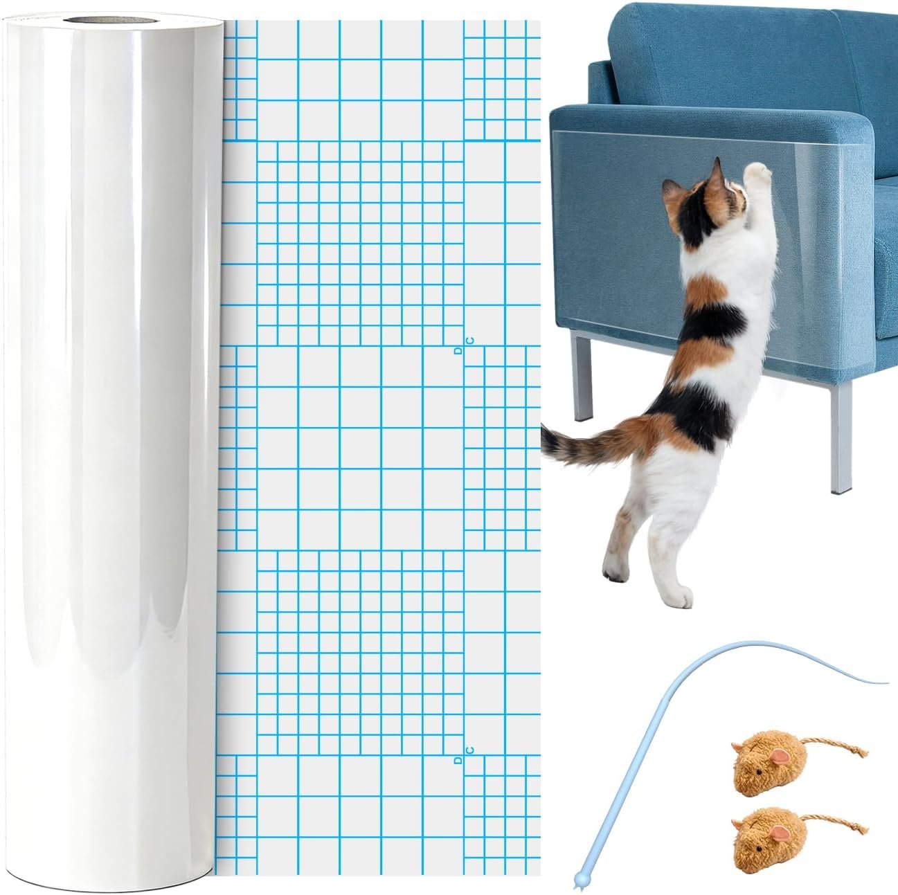 【Thick, Transparent & Easily Customizable】The cat couch protector is made from a thick, soft, and flexible material that conforms to furniture contours. The transparent design is discreet, and the printed grid lines on the back allow for easy, precise cutting to any size or shape without measuring tools.