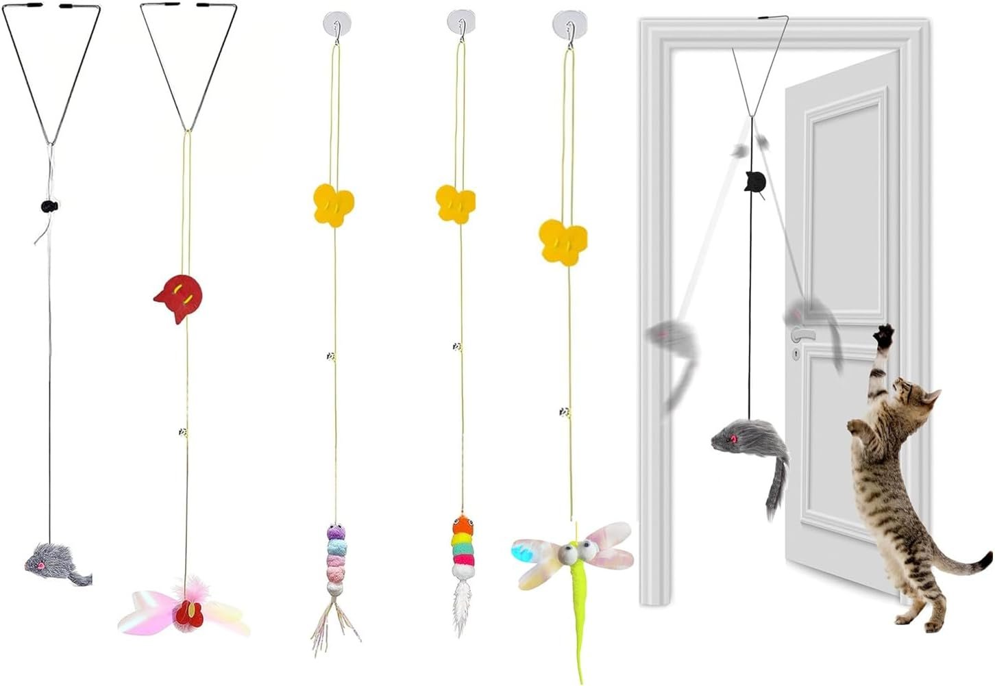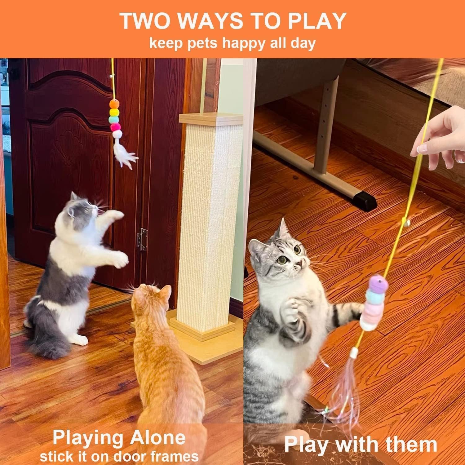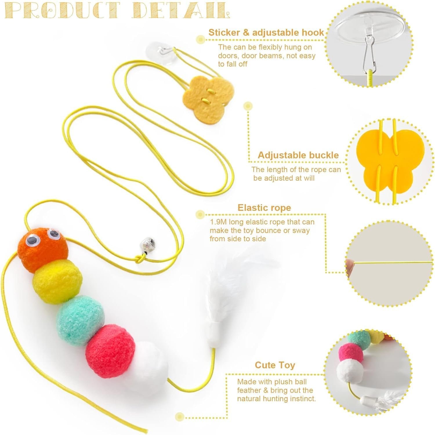 【Customizable Interactive Experience】 With two toys equipped with a versatile triangle multi-purpose hook, allowing you to easily switch between toys according to your cat’s preferences, and another three with double-sided adhesive hooks for convenient placement on doors or smooth surfaces, these toys offer a tailored interactive experience for your feline friend.