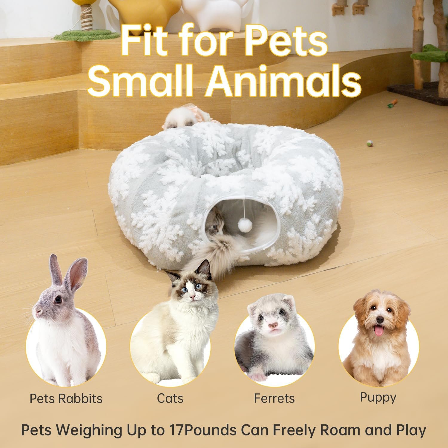 Spacious and Comfortable: 33.4 X 33.4 inches circle cat tunnel bed size, the height of the internal space of the tunnel is 10.2 inches. Suitable for small, medium and large cats to walk through, can be played with by multiple cats or small animals at the same time, great for interaction with cats