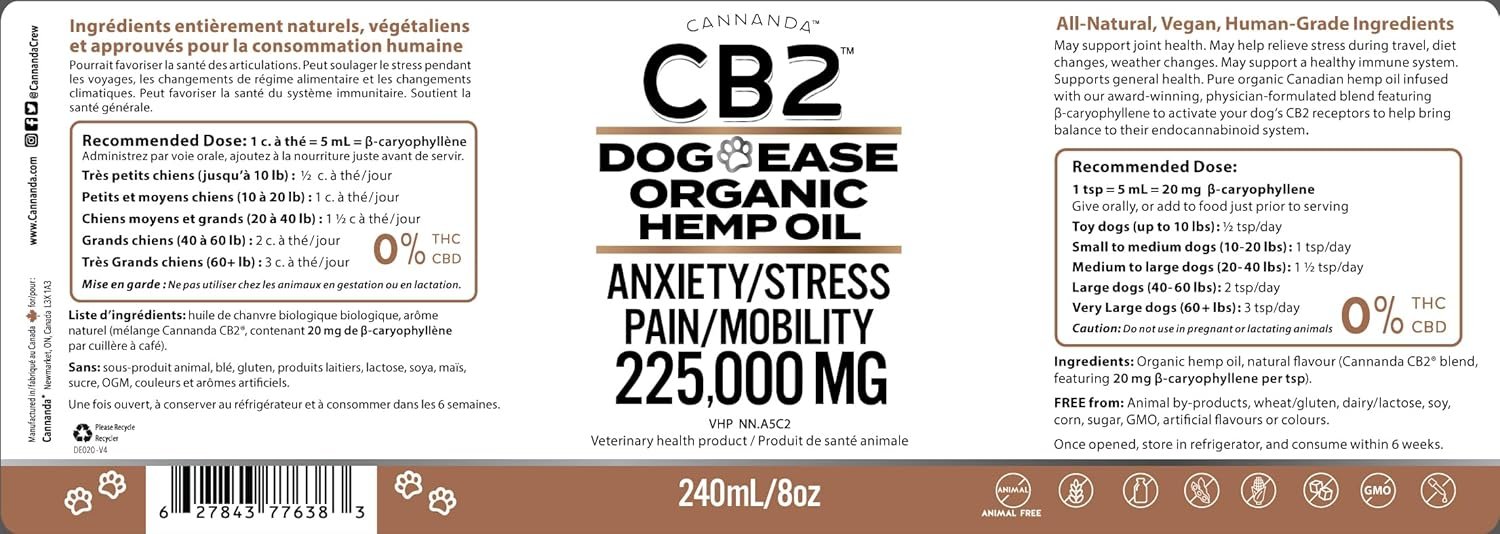 🇨🇦 MADE IN CANADA 🇨🇦: CB2 is a Canadian brand. All our CB2 products are made in Canada from Canadian grown organic hemp. Join over 1 Million happy, healthy dogs across North America who trust CB2. Click “Add to Cart” or “Subscribe and Save” for great savings. YOUR BEST BUDDY DESERVES THE POWER OF CB2!