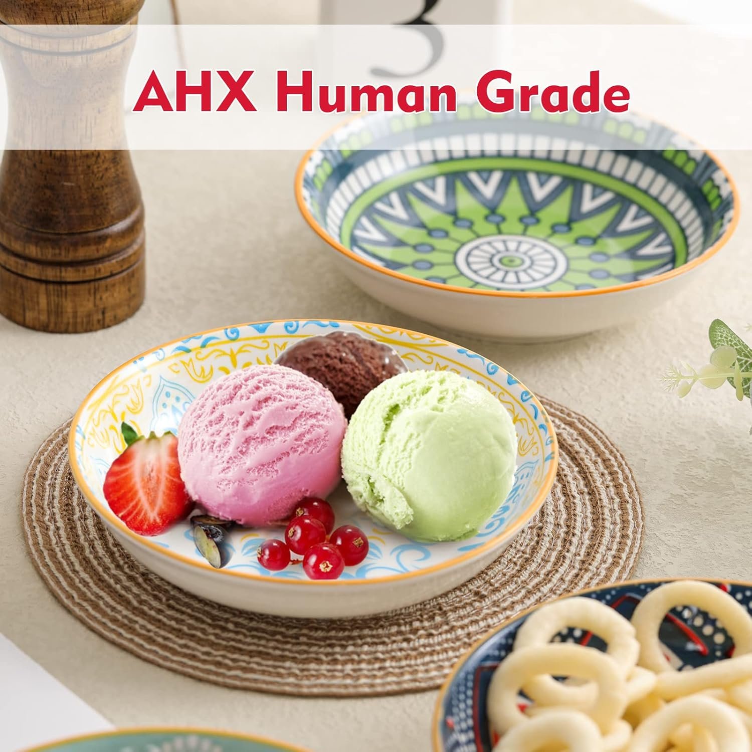 Ceramic Cat Bowls Set of 6 – Colorful Cute Shallow Cat Dishes – 5.75-Inch, Whisker Friendly and Wide – Microwave & Dishwasher Safe – 8.5 oz (250 ml)