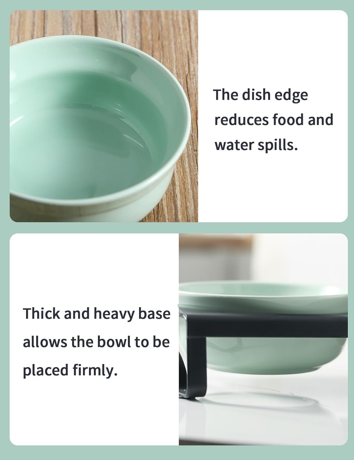 【HEALTHY EATING POSTURE】The raised design of our green cat bowls improves your cat’s eating posture, promoting healthy digestion and reducing the risk of vomiting and indigestion.