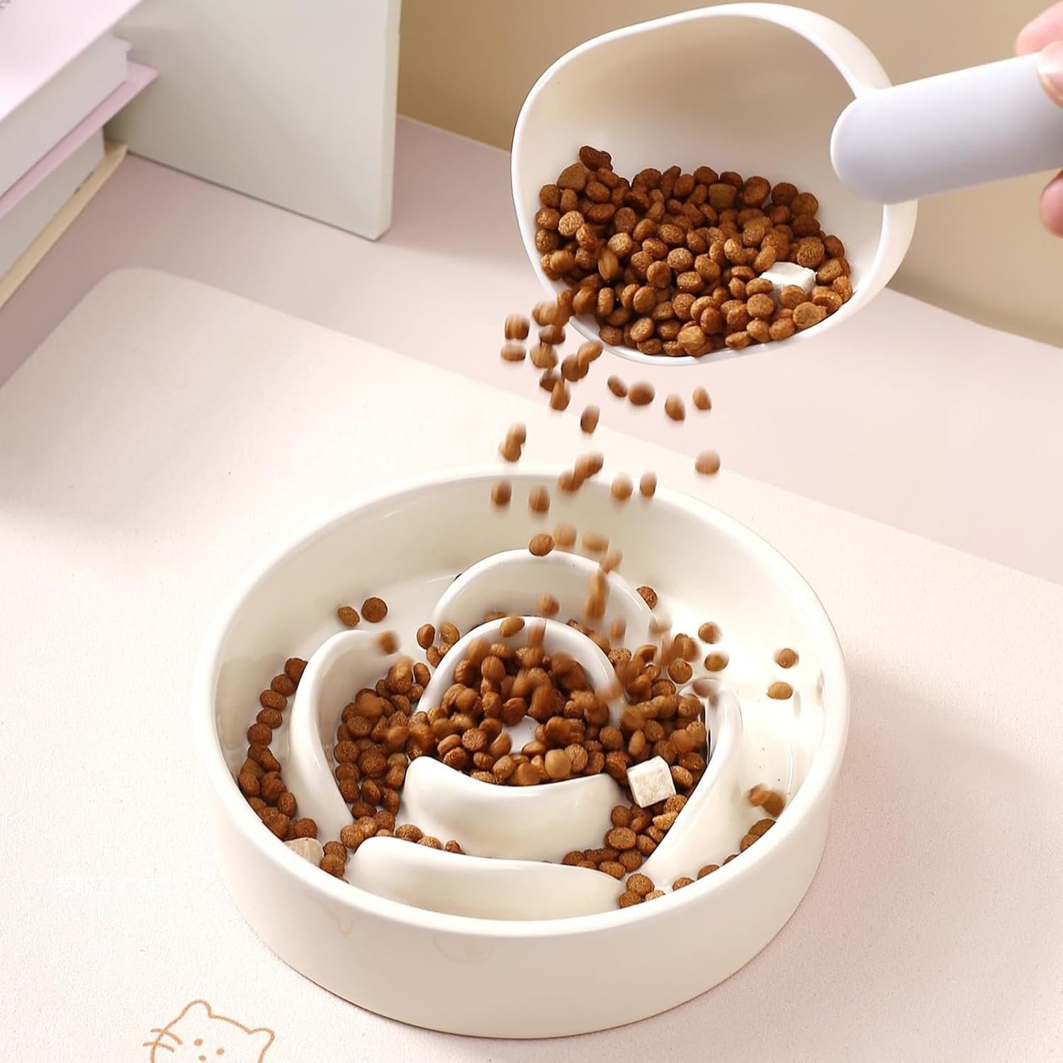 PREMIUM MATERIAL: This slow feeder cat bowl is made of food grade high quality ceramic, which is sturdy, durable and unbreakable, far better than plastic bowls. Smooth and no sharp edges to ensure your pet’s safety during feeding