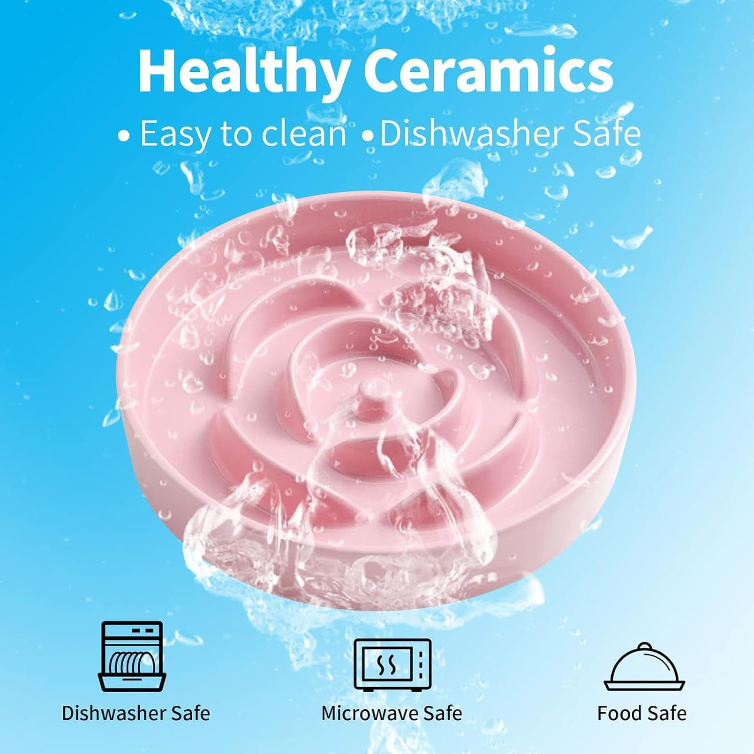 EASY TO CLEAN: Dishwasher safe, the smooth glazed surface of the ceramic slow feeder bowl effectively prevents dirt and odor residue. Whether your beloved pet eats dry or wet food, this bowl will meet the needs