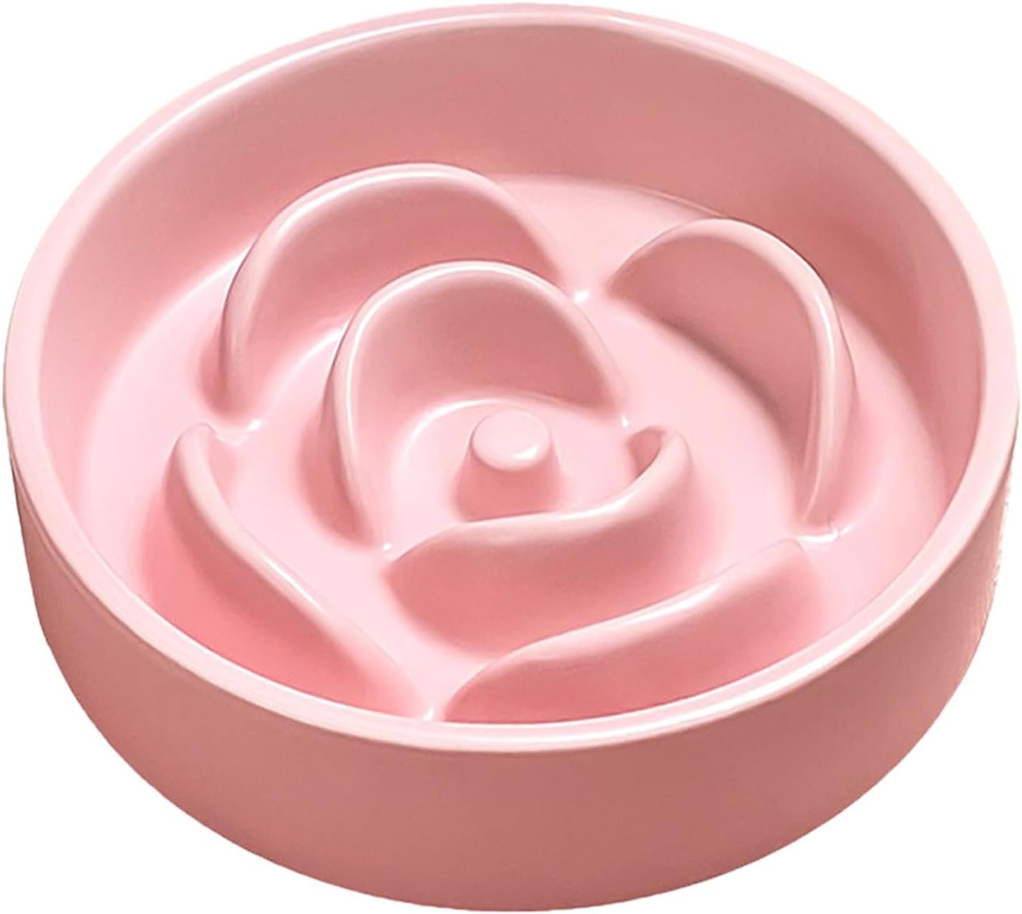 Ceramic Slow Feeder Bowl, Rose Shaped Puzzle Food Bowl for Small Dogs and Cats, Slows Down Eating, 15.5cm/6.1in (Pink)