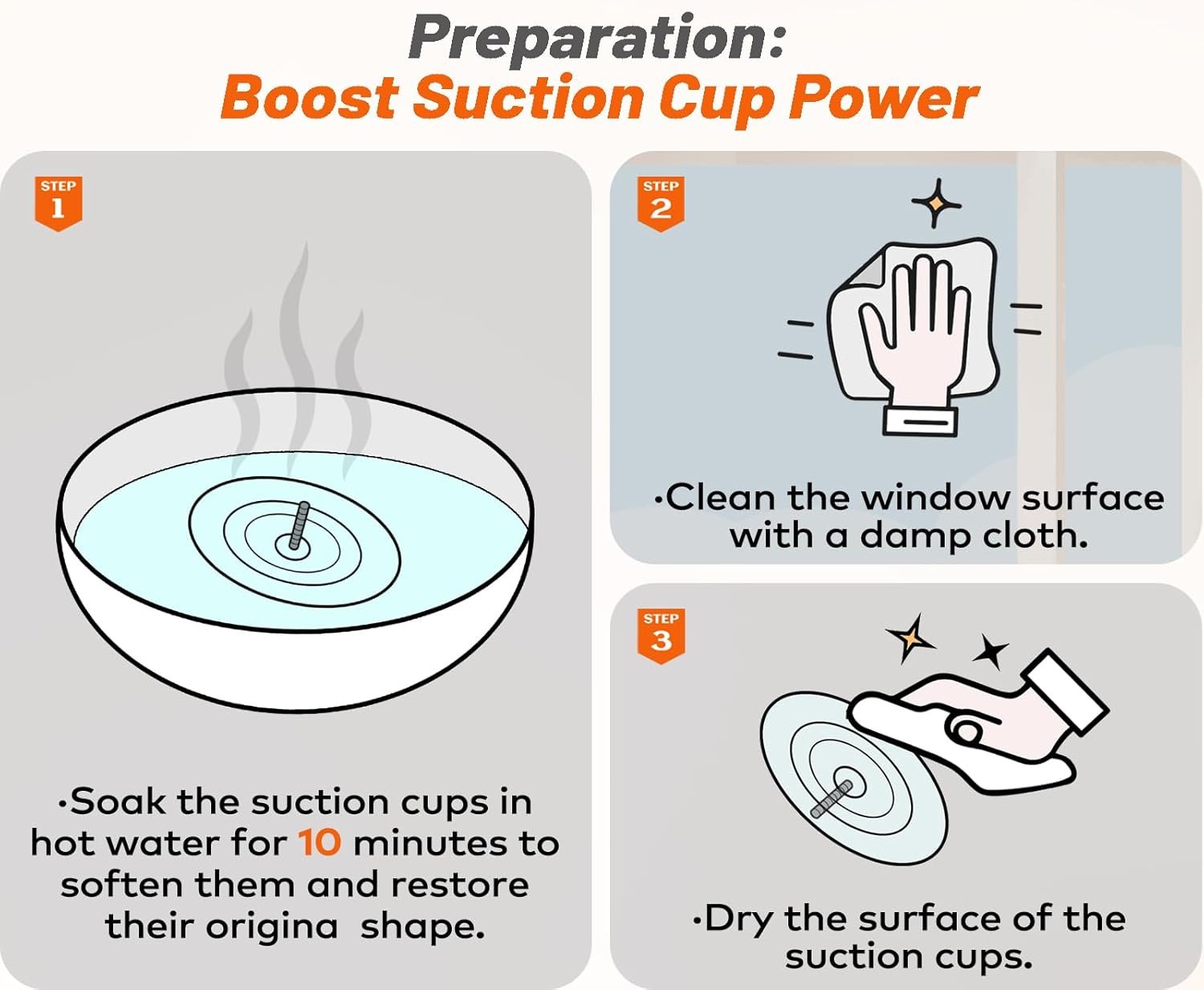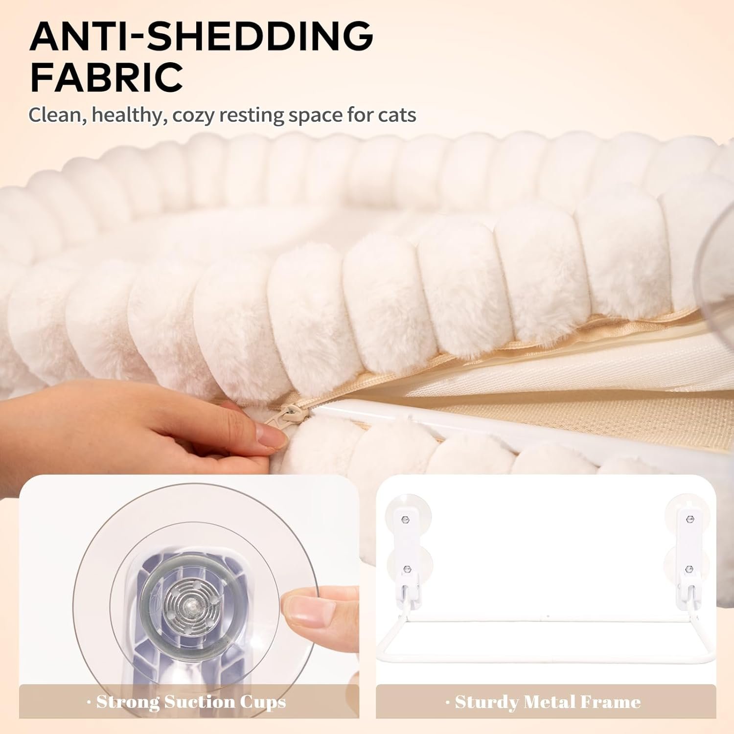 Sturdy & Stable: Supports up to 40 lbs—even when your cat jumps and plays, there’s no risk of falling. Fits cats of all breeds and sizes.(For stronger suction, gently wipe the suction cups with a damp wipe before use)