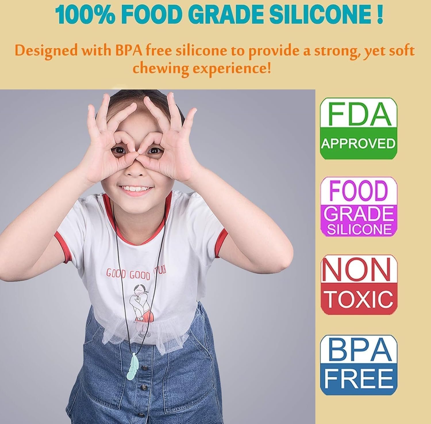 ★ ★ ★ Adjustable Length & Premium Quality: Soft, durable food-grade silicone, adjustable chain fits all ages (babies to adults), non-toxic and easy to clean.