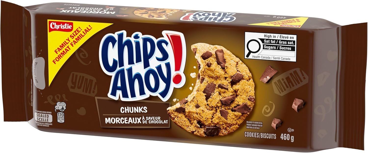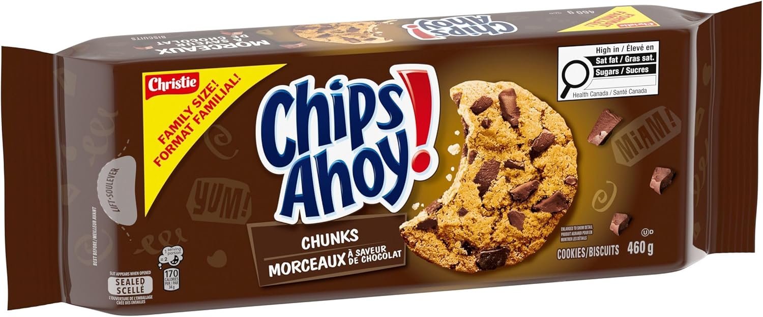 Canada’s #1 Chocolate Chip Cookie Brand – CHIPS AHOY! Chunks Chocolate Chip Cookies are the CHIPS AHOY! cookies you know and love. They’re crammed with real chocolate chunks, making for a sweet, crowd-pleasing treat. Available in Family Size!