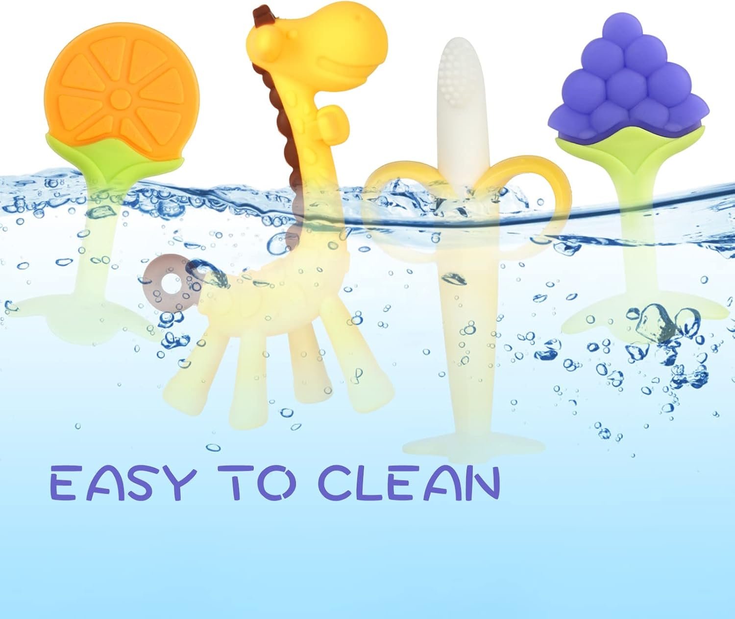 【Easy to Clean】Baby teething toys are durable and can be used for a long time. Perfect chew texture for baby’s needs for relief of discomfort and soft gums.