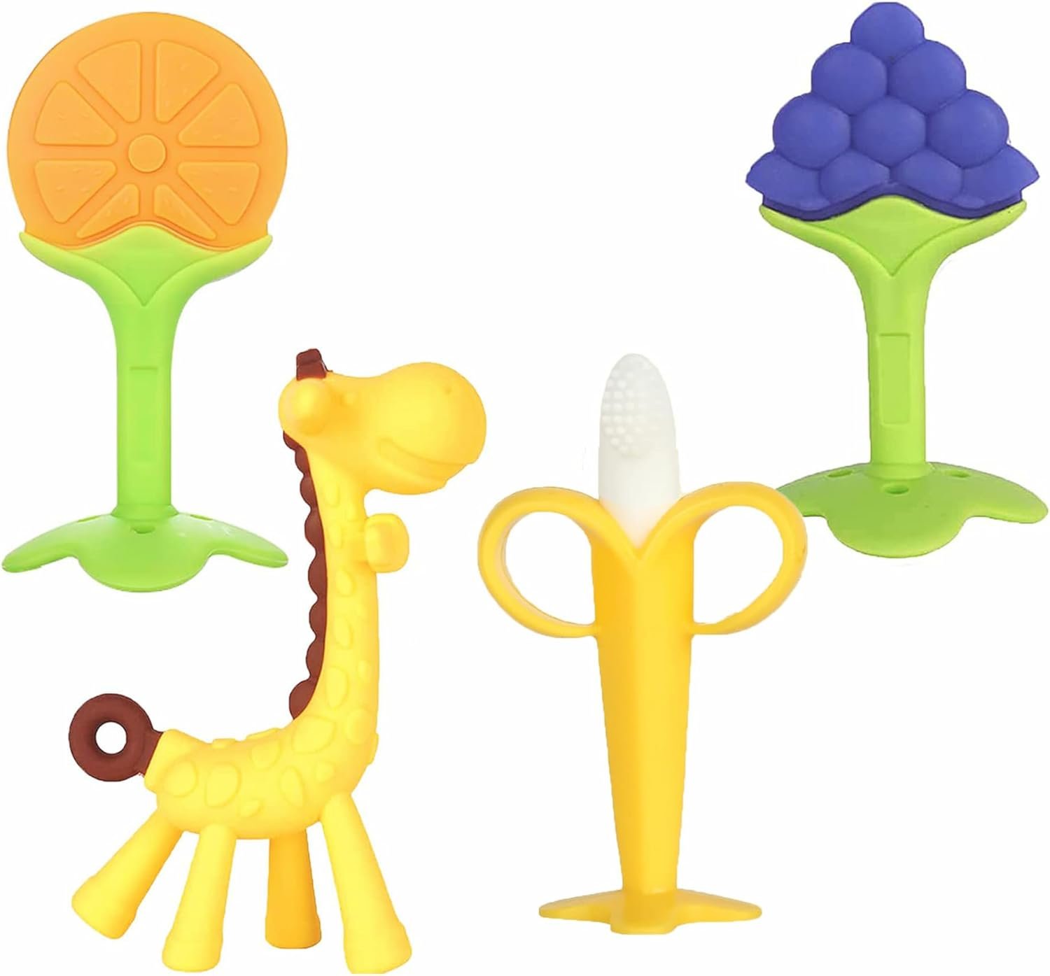 Chuya Teething Toys (4 Pack) Teething Toy for Baby, Teach Teeth Brushing ,BPA-Free,Chew Toy for Infants Toddlers Silicone Baby Teethers Giraffe Fruit Teething Stick for Babies 3 Months+