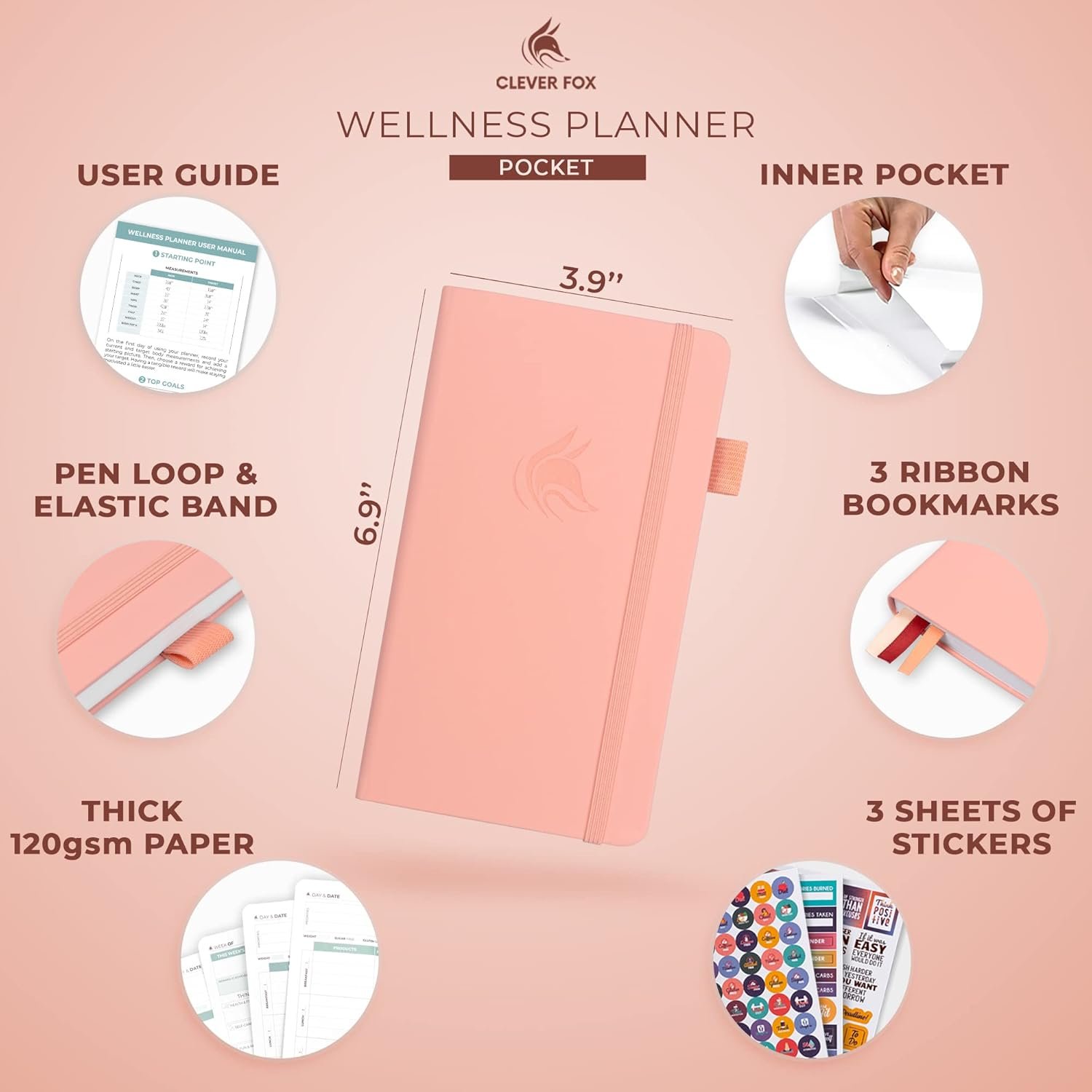 Clever Fox Wellness Journal Pocket – Daily Health & Wellness Log – Food Tracking Journal & Meal Planner for Calorie Counting, 3.7×6.7″ (Light Pink)