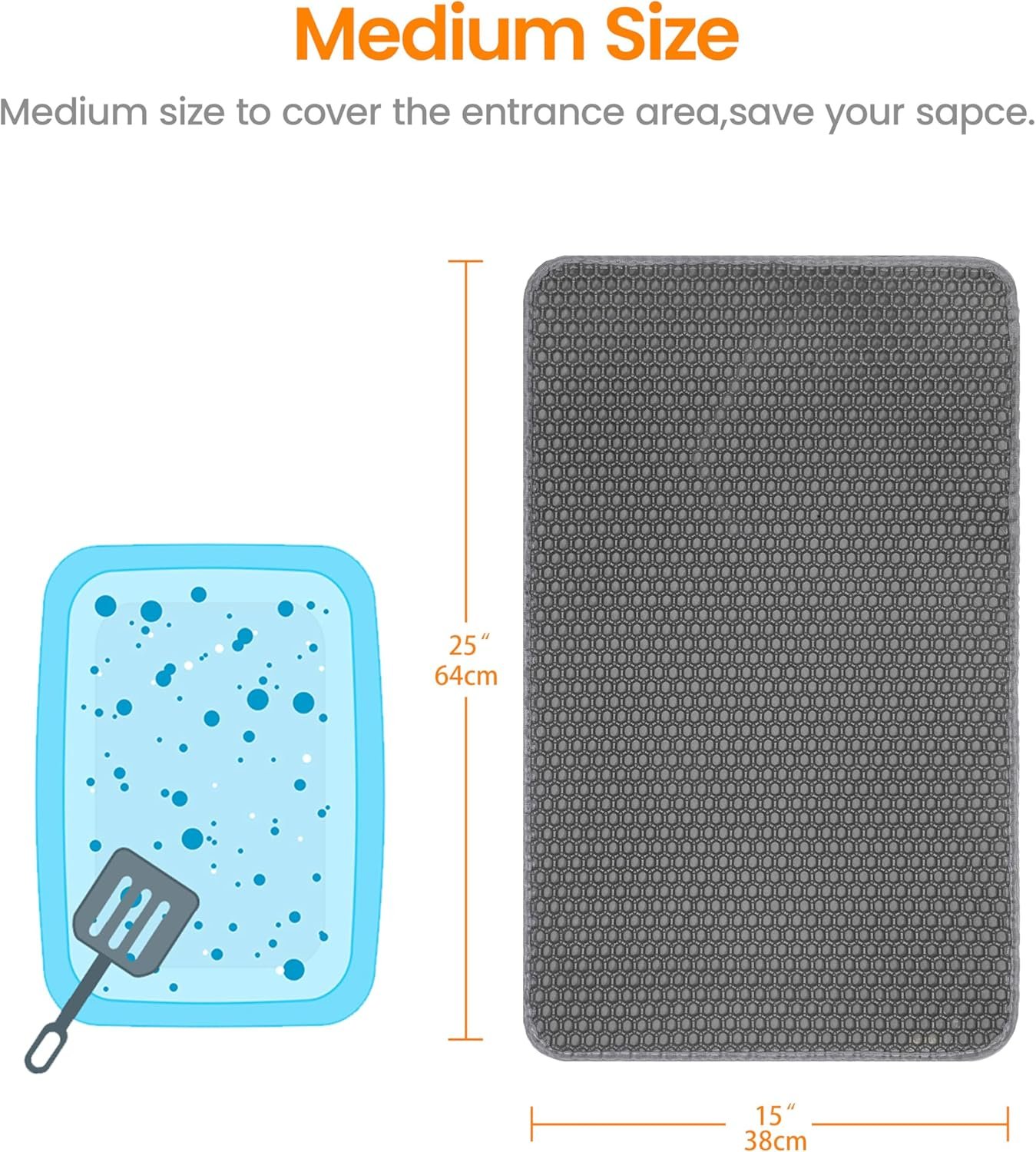 Honeycomb Design Trap More Litter: Conlun cat litter trapping mat has a double layer folding design with large honeycomb holes on the top. When your cat walks out of the litter box, all the litter and dirt attached to the paws will be captured and slip into the bottom layer of the litter box mat, avoiding kitty tracks and dirt being around the house. With Wider and bigger honeycomb holes design, our cat litter mat is very efficient in catching all sizes of litters.