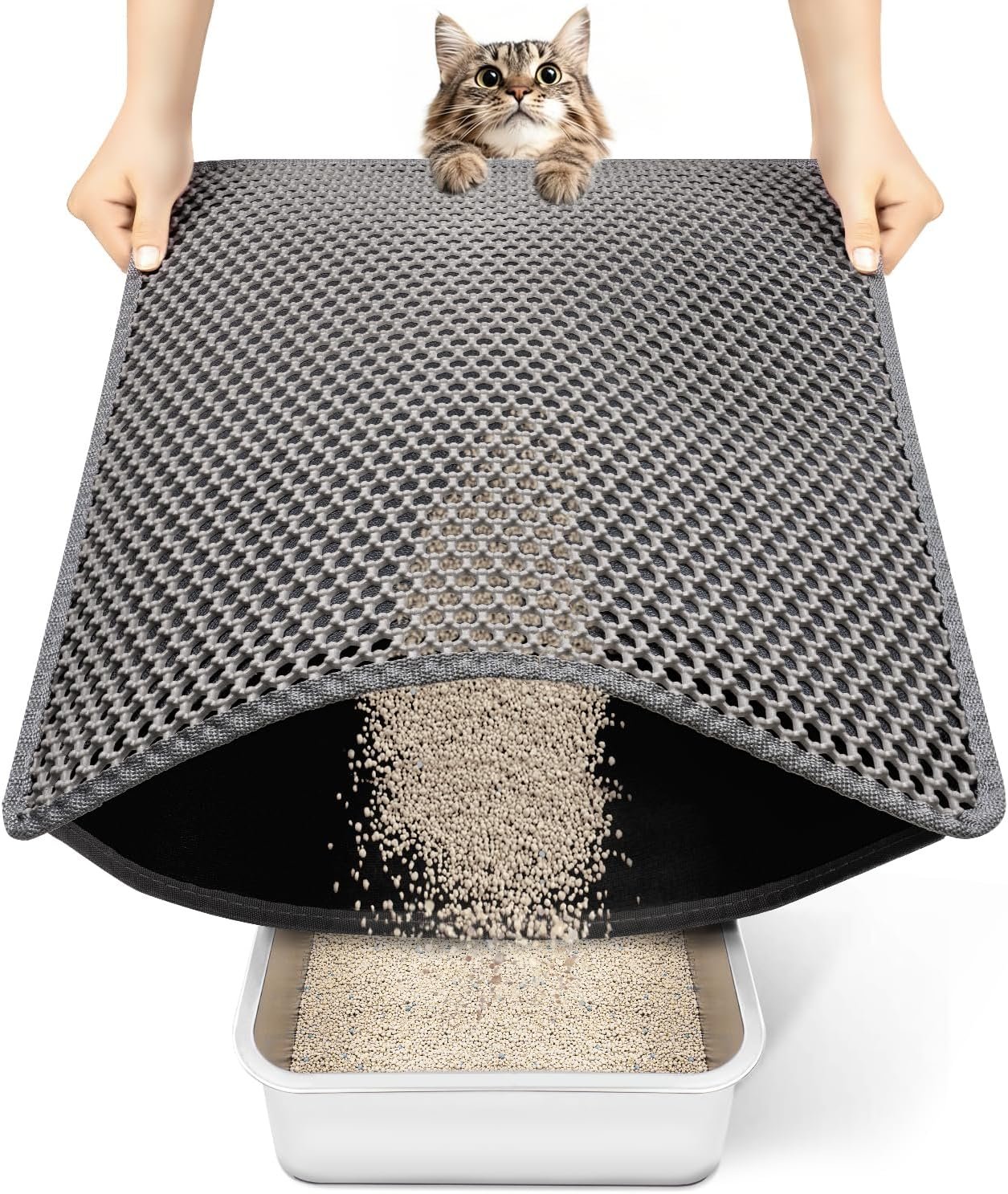 Conlun Cat Litter Mat, Litter Box Mat Honeycomb Double Layer, Urine Waterproof, Easier to Clean Non-Slip Kitty Litter Mat,Gray,58 x 42 cm