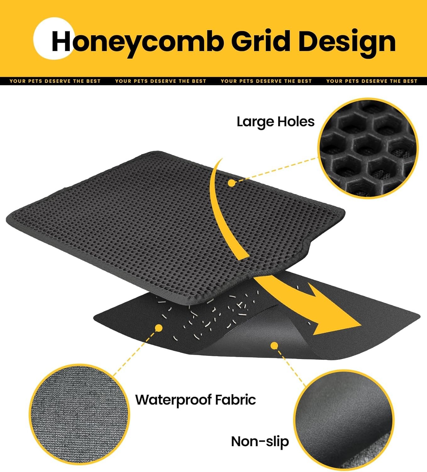 Superior Litter Trapping: Features a double-layer honeycomb design to effectively capture and contain all types of litter as your cat steps off the box. Minimizes tracked litter and allows for reuse, keeping your home cleaner.