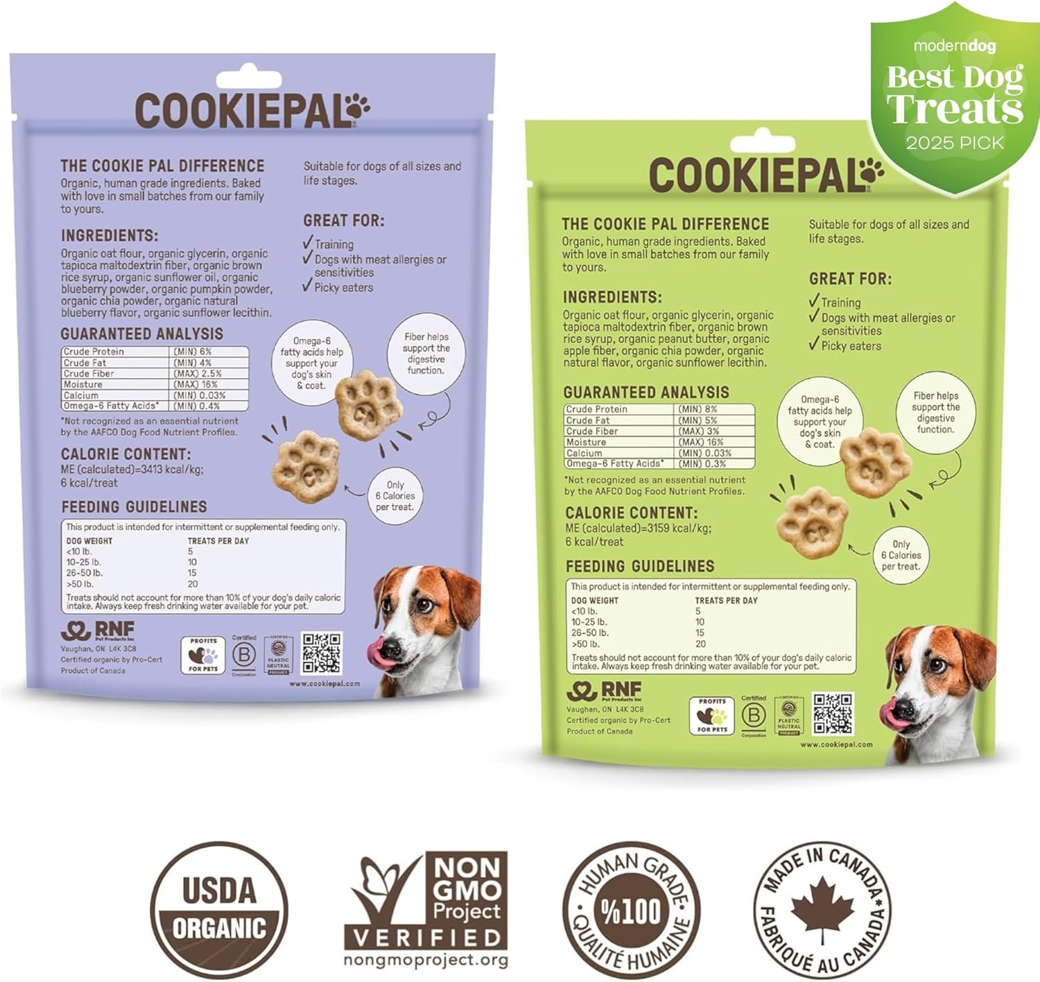Cookie PAL Organic Soft Dog Treats (Peanut Butter Apple & Blueberry Pumpkin), Made in Canada, Low Calorie Human Grade Biscuits, Non-GMO, 250g (4 pk)