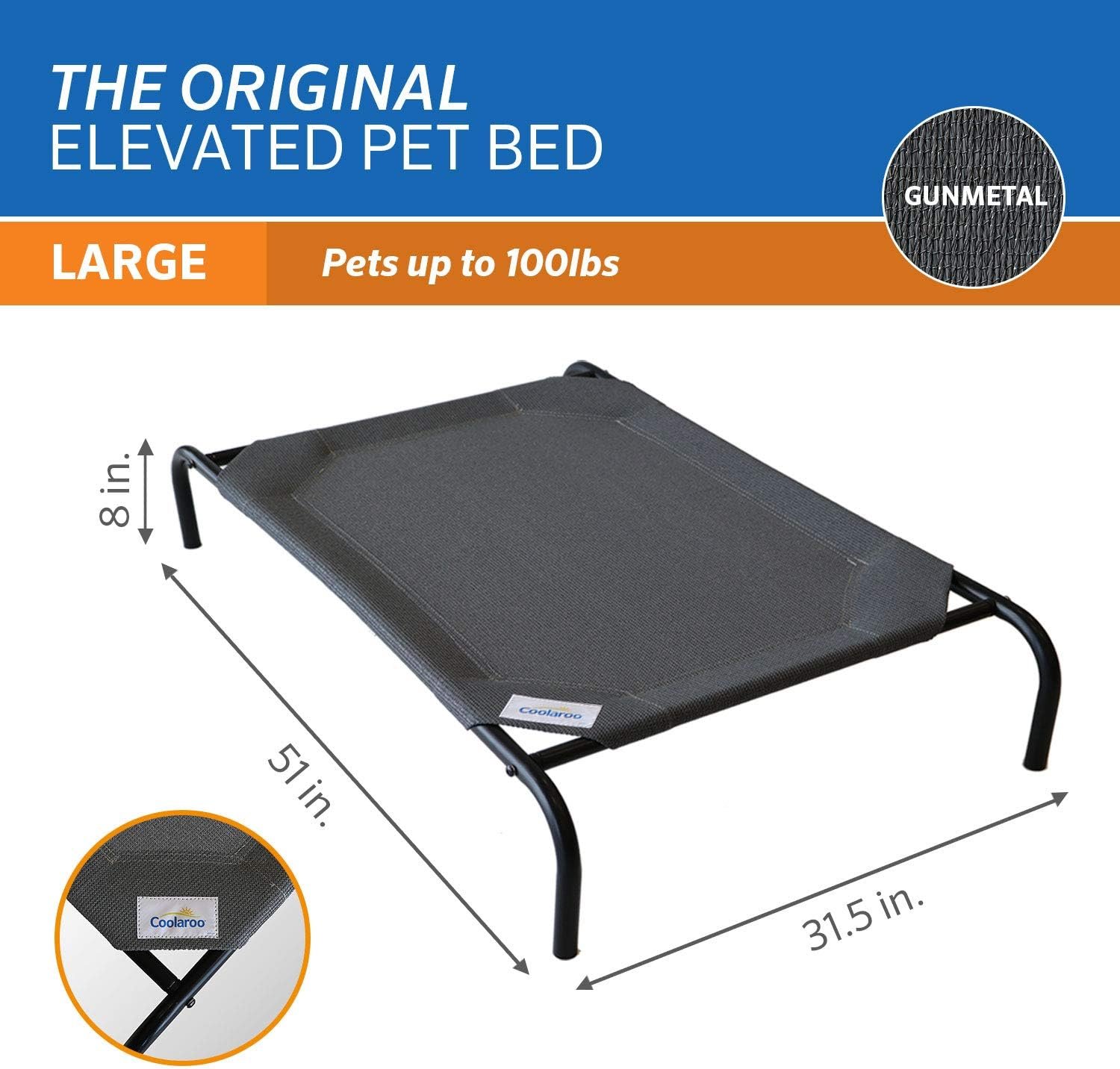 Coolaroo Original Elevated Dog Bed – Breathable Off-The-Ground Pet Bed with Cooling Fabric, Joint Relief & Moisture-Resistant Fabric, 100% Recyclable, Easy Clean, Gunmetal, Large