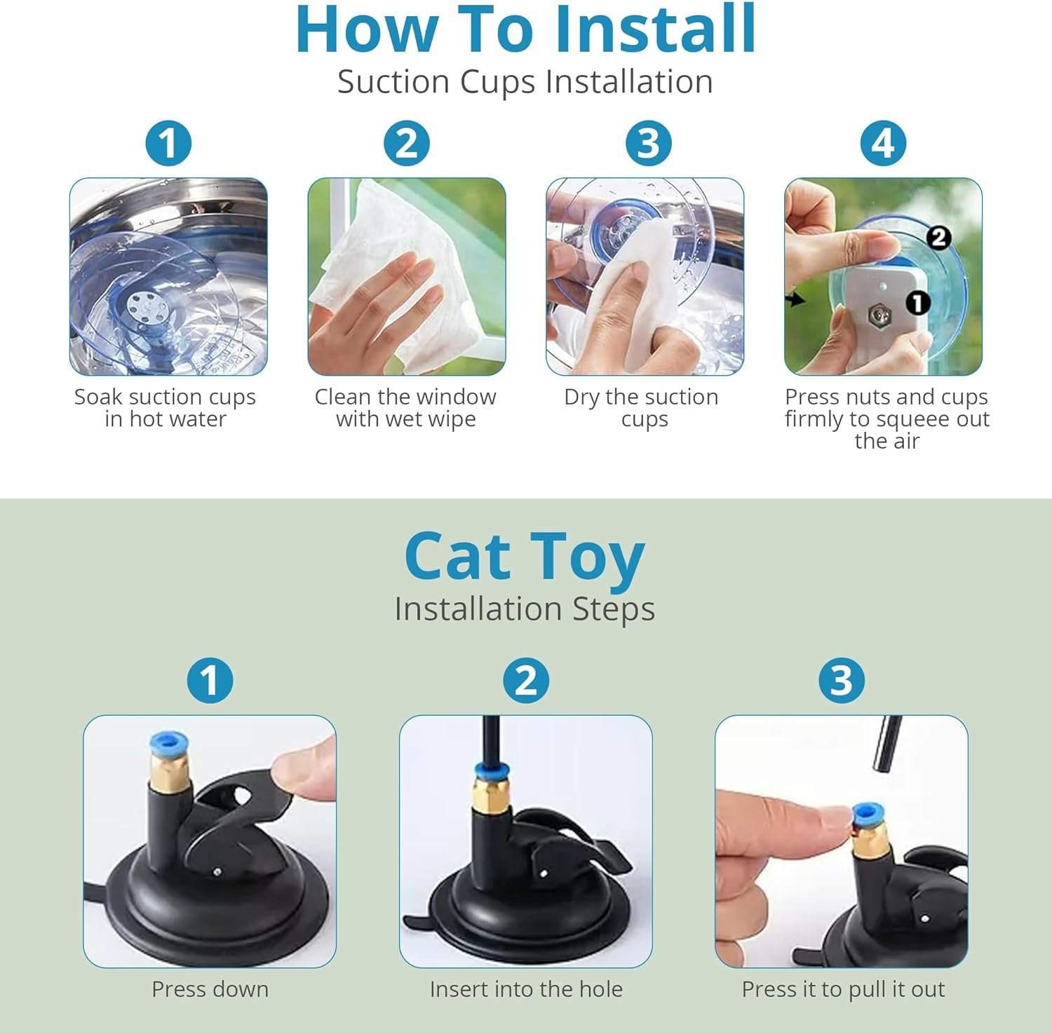 🧼 Quick Tool-Free Installation – Easy Cleaning 👉 “Do I need to drill or use tools?” Not at all. Just clean the window and press the suction cups: in 3 minutes your window cat perch has a safe place. The cover is removable and machine-washable for maximum hygiene. (Window cat hammock easy to install, washable cover).