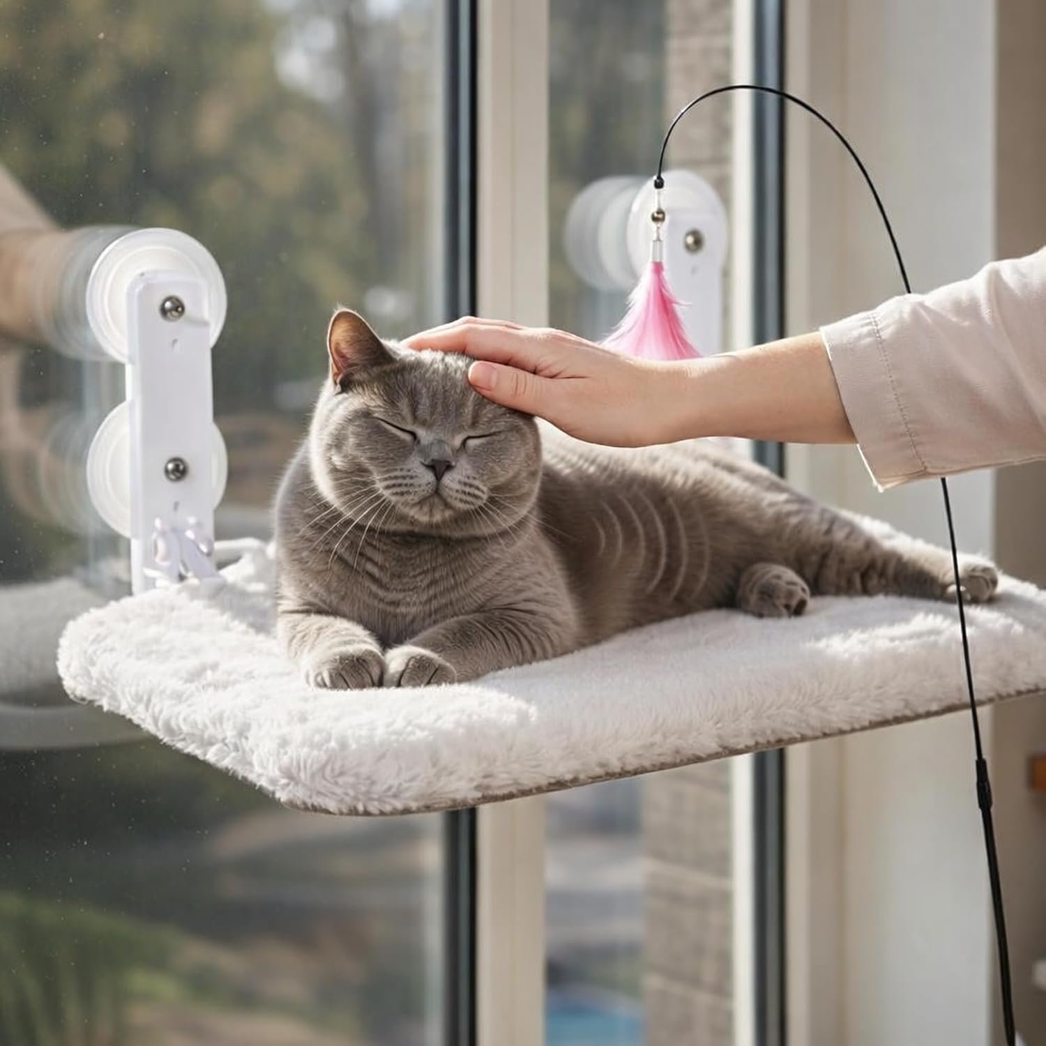 🎁 Bonus Toy Included – Fun & Stimulation 👉 “Will my cat get bored on the hammock?” No! This cat window perch comes with an exclusive hanging toy that keeps your cat active, curious, and happy. Every nap becomes playtime. (Cat window perch, funny cat accessories).