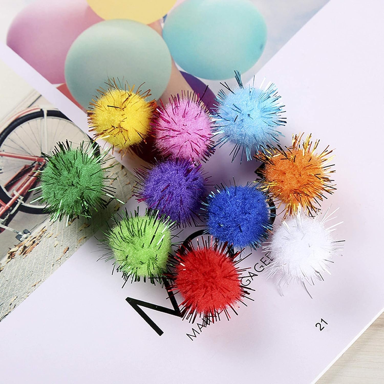 CRMADA Cat Toys Balls Sparkle Pom Pom Fuzzy Balls for Cats 20 Pack