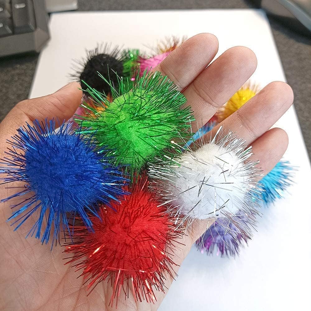 Cat Toys Balls Sparkle Pom Pom Fuzzy Balls for Cats 20 Pack