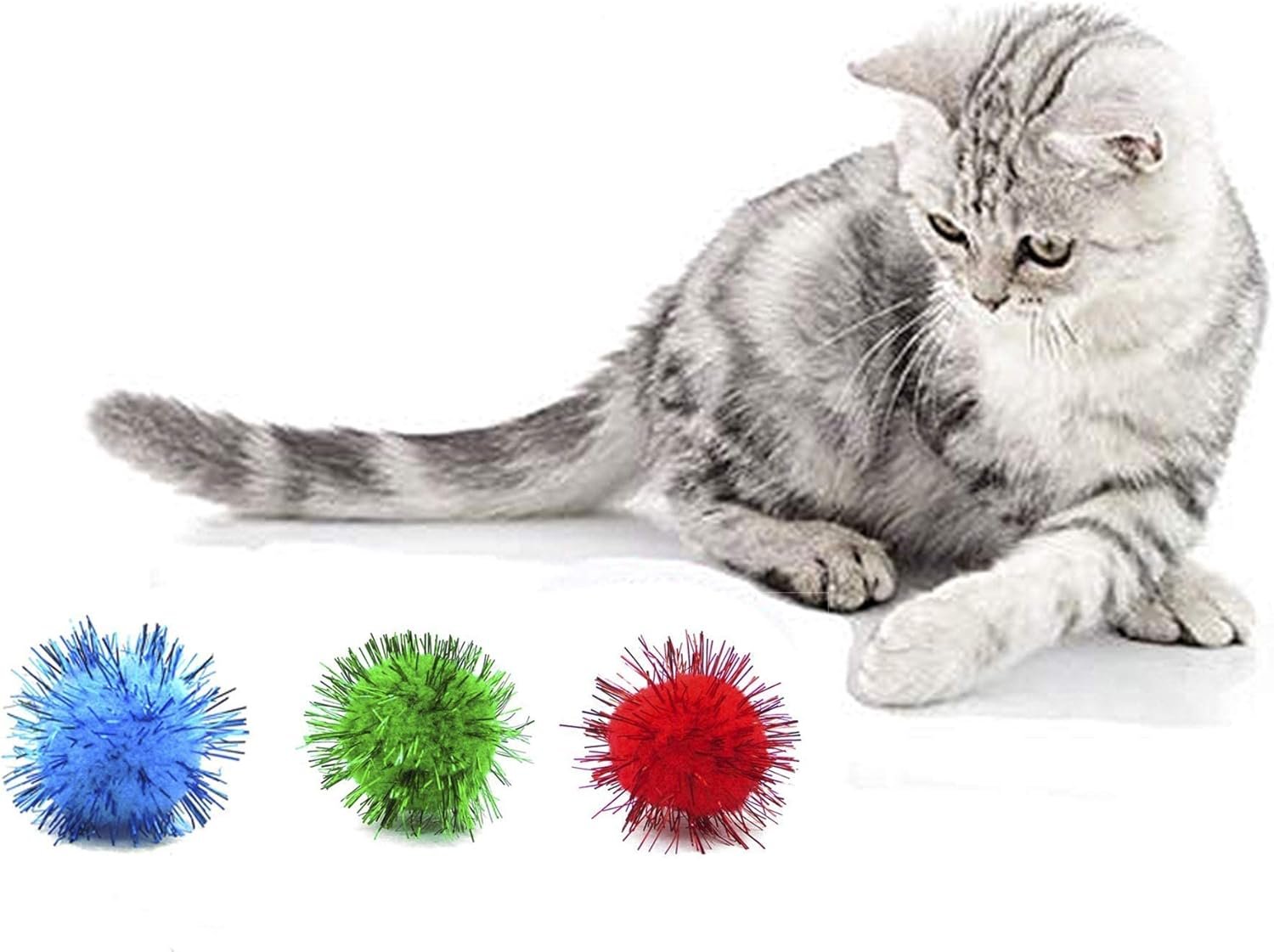 Product Size: These cat toys balls measure approx. 1.5″ (dia),including the sparkle tinsel;1.1″(dia) without the tinsel.